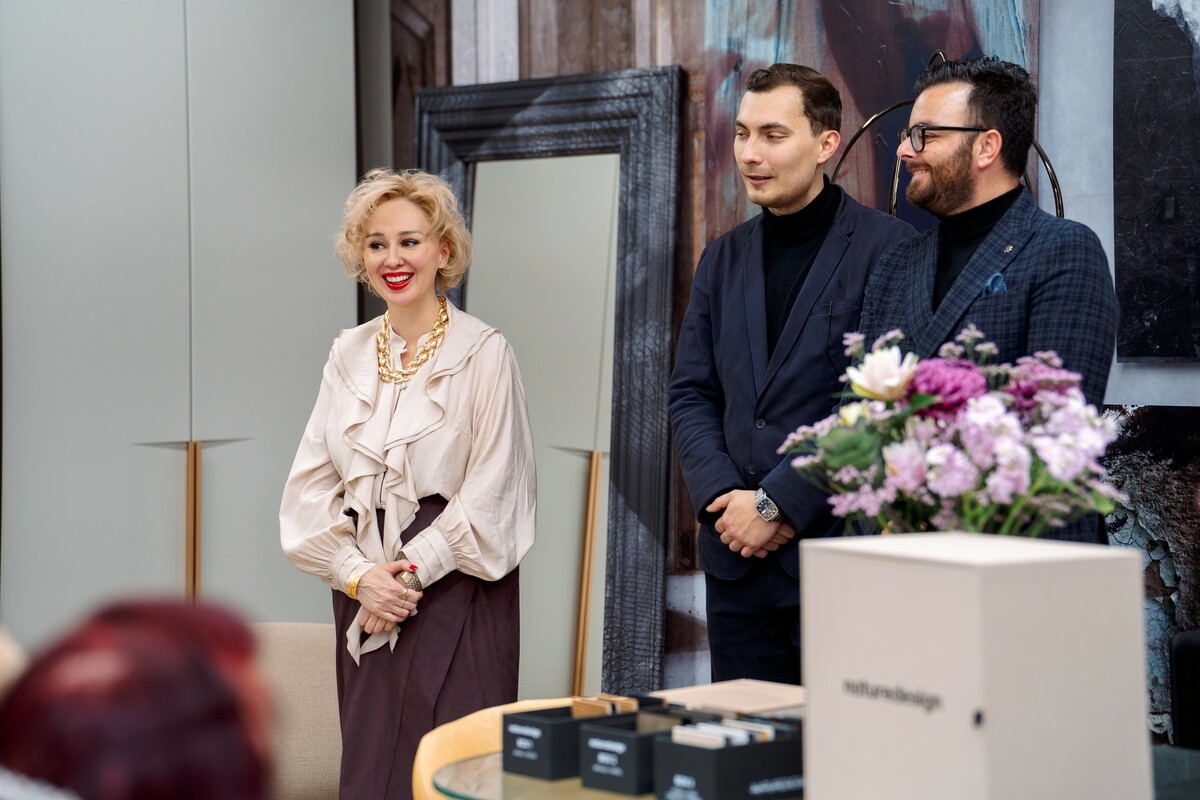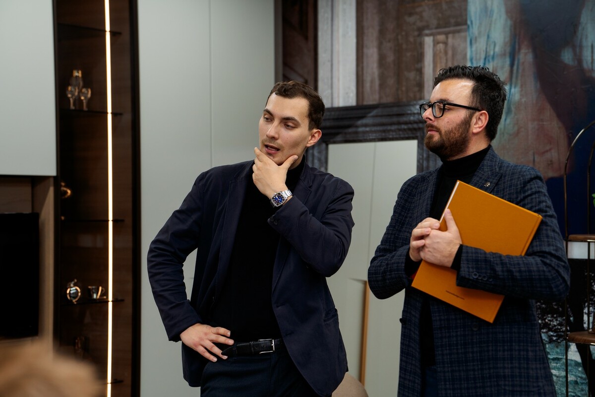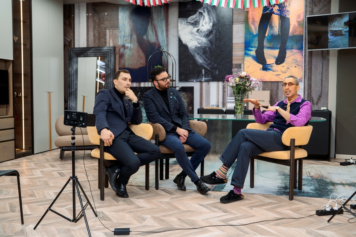 Вместе с Давиде они погрузились в обсуждение новейших мебельных разработок и природного дара итальянских мастеров, который привносит свежий взгляд на современные интерьеры.