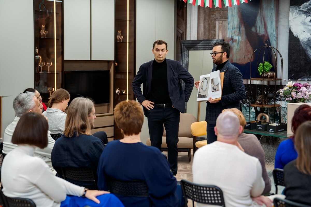 Также, Давиде рассказал гостям мероприятия об особенностях изготовления и тонкостях дизайна мебели. Особенно активные гости - были вознаграждены подарками от нашей компании.
