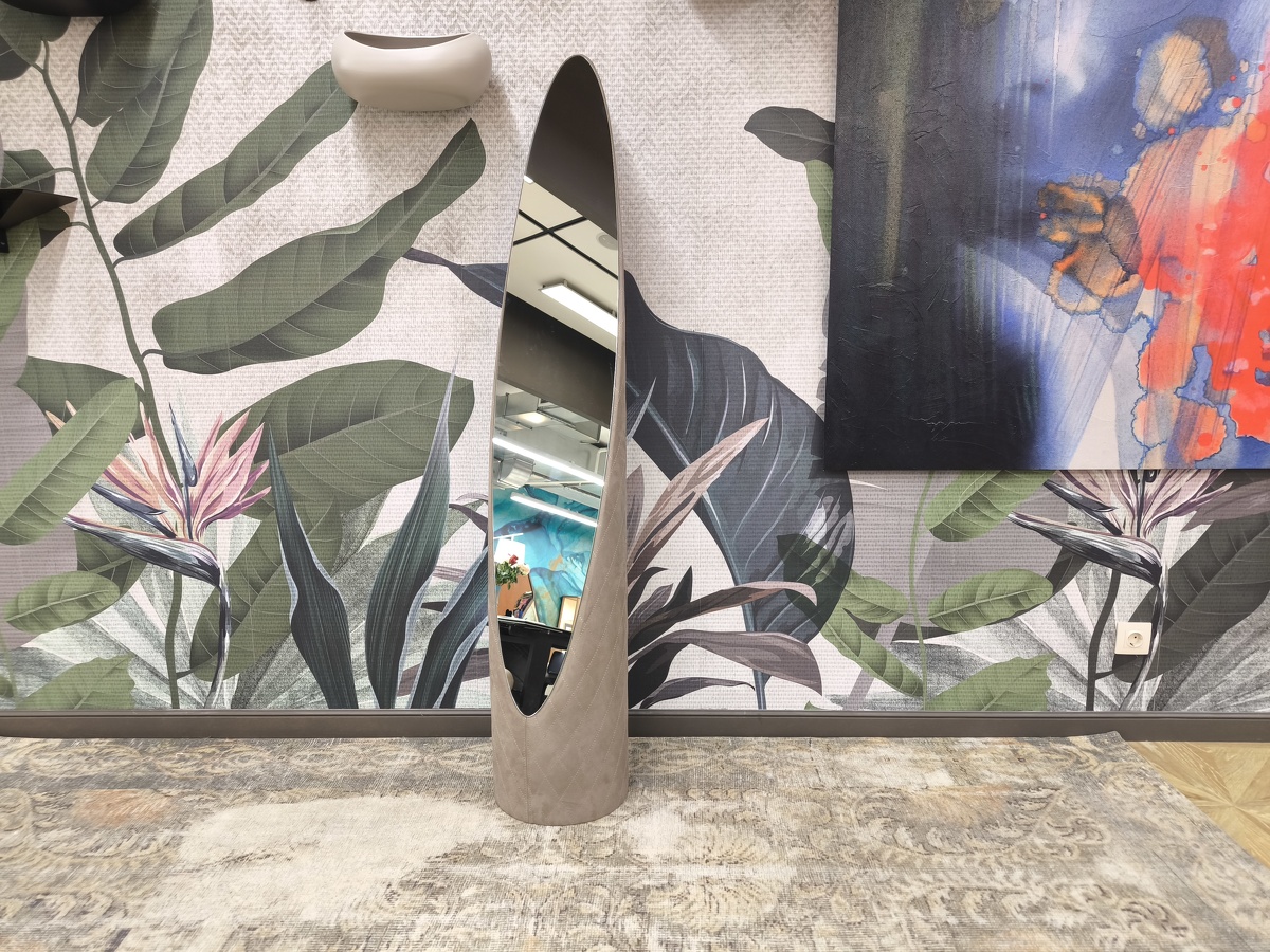 Зеркало, обтянутое кожей или экокожей.