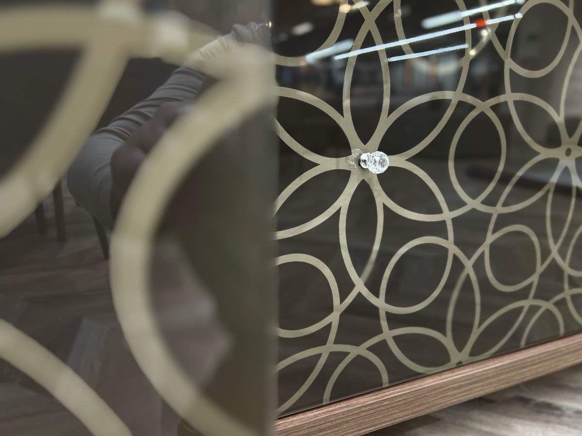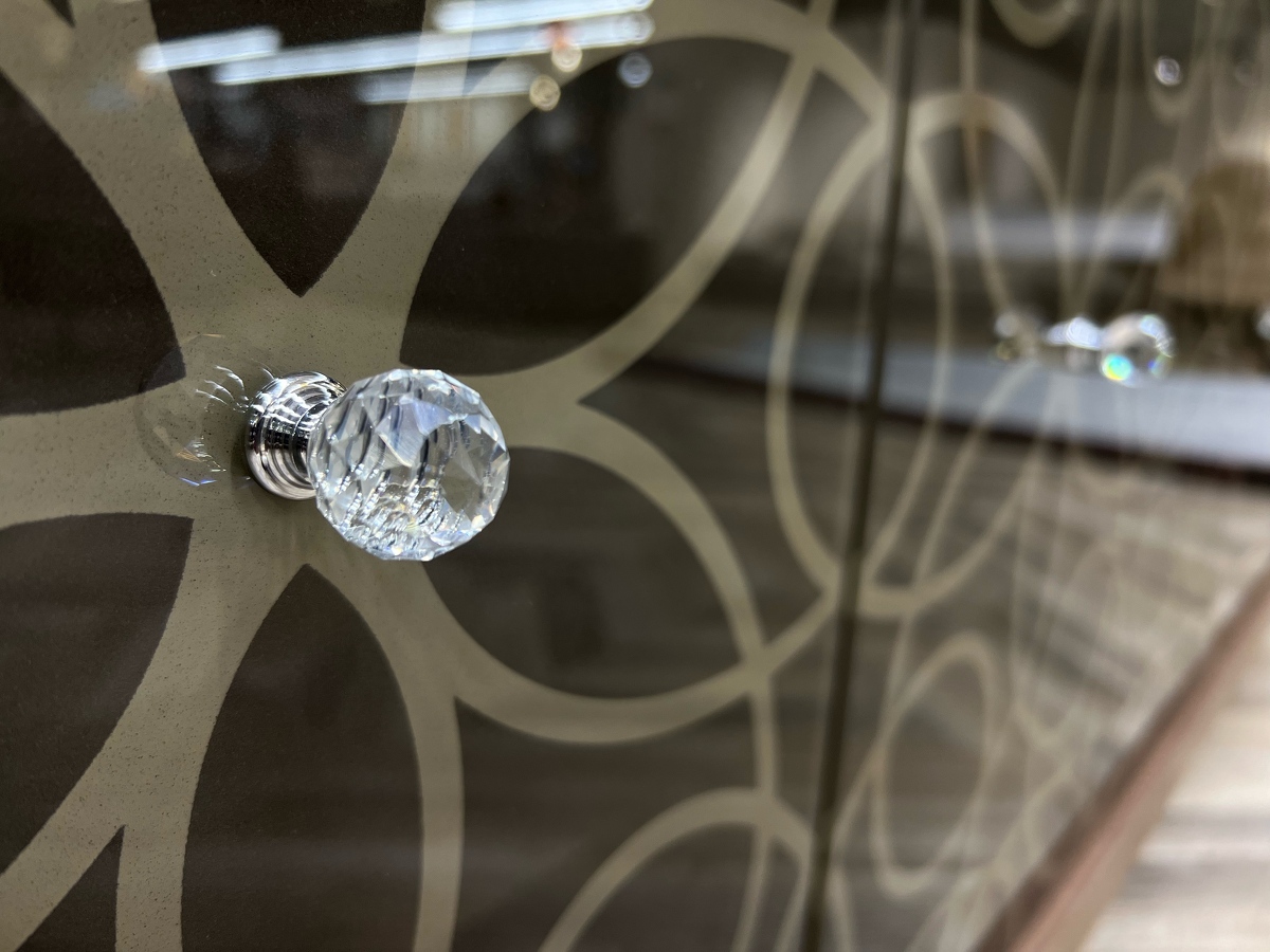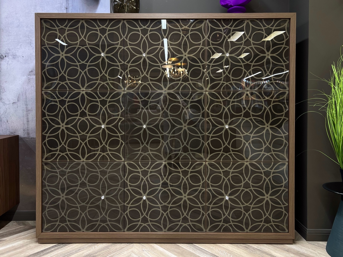 100% Made in Italy. Высокий уровень. Коллекция Design Couture. Дизайн от Angelo Tomaiuolo. Драгоценные детали. Фасады со сложным кружевным узором, ручки, имитирующие бриллианты Время изменить себя и все вокруг. Дизайн мебели трансформируется в создание произведения ювелирного искусства. Программа Granada состоит из тумб и витрин различных модификаций. Каркас изготовлен из дерева в отделках noce canaletto и rovere scuro . Стекло-бронзовое прозрачное или бронзовое оксидное.Ручки - Swarovski.