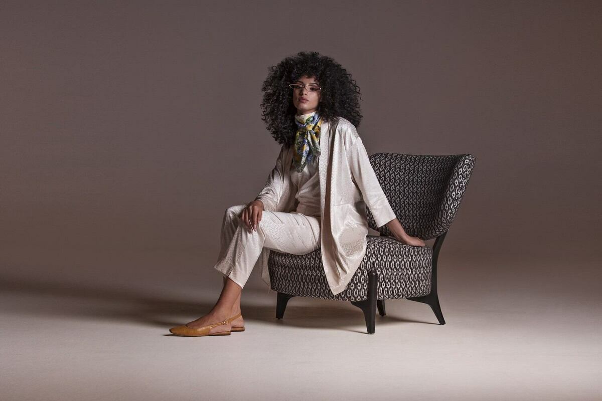 Итальянское Кресло Silla Calia Italia на деревянных ножках без подлокотников в жакардовой ткани