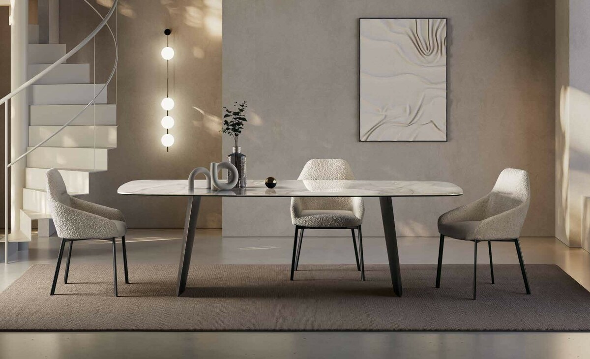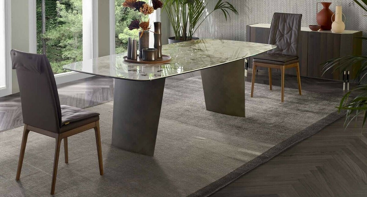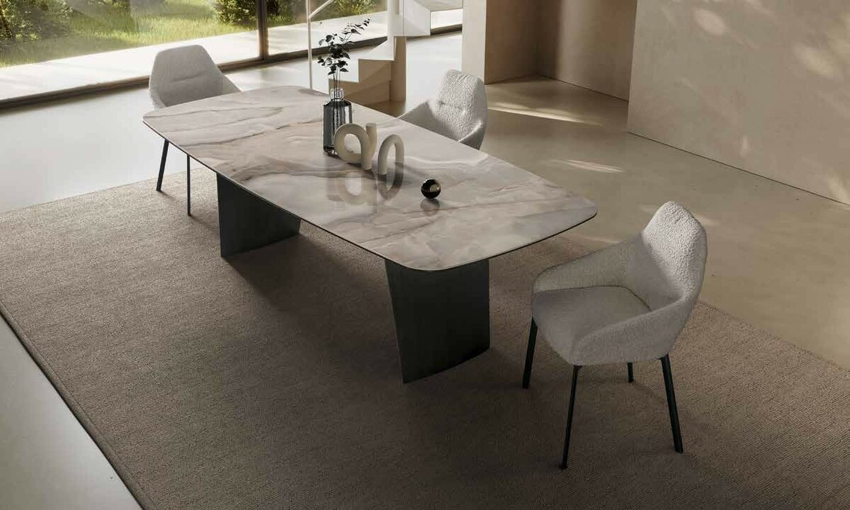 Стол обеденный большой с Stone с закругленной керамической столешницей Tafaruci