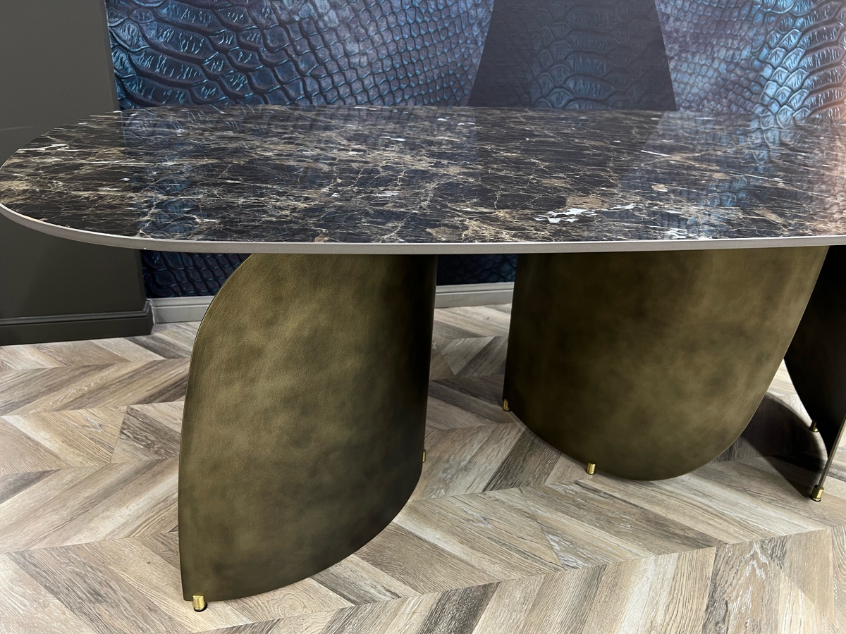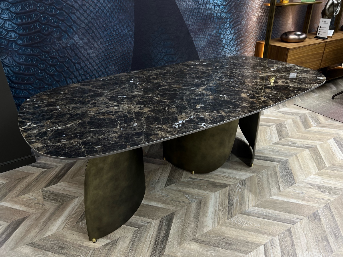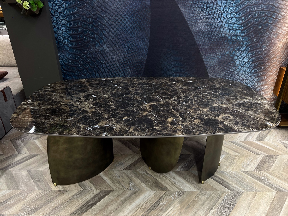 Стол Sail олицетворяет собой эстетическое и конструктивное решение, напоминающее развёрнутые паруса. Его тонкое и лёгкое основание подчёркивает плоскость столешницы, которая спокойно парит, контрастируя с сочетанием резких изгибов яхтенного паруса. Обработанная Бронза и столешница из дерева, керамики или мрамора придают столу объём и прочность.