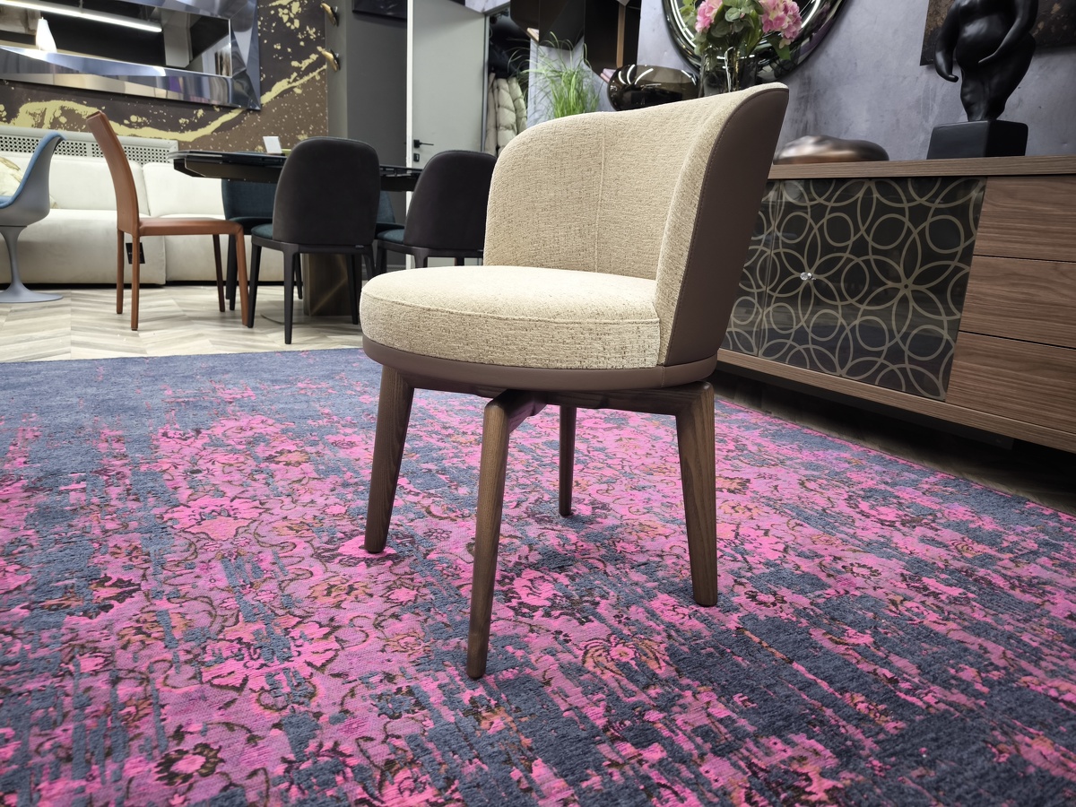 Стул Ginger на поворотном деревянном основании - это уже больше по форме кресло, выполненное в классическом стиле, пересмотренном в современном ключе и с актуальным взглядом на комфорт и функциональность.
