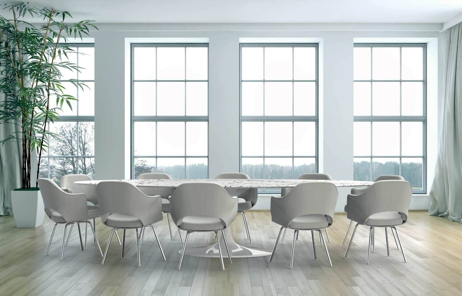 Eero Saarinen нашёл идеальный баланс между красотой и прочностью. Даже при максимальном размере столешницы 330 см, стол