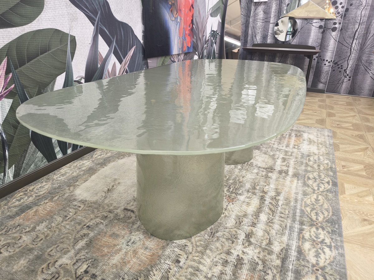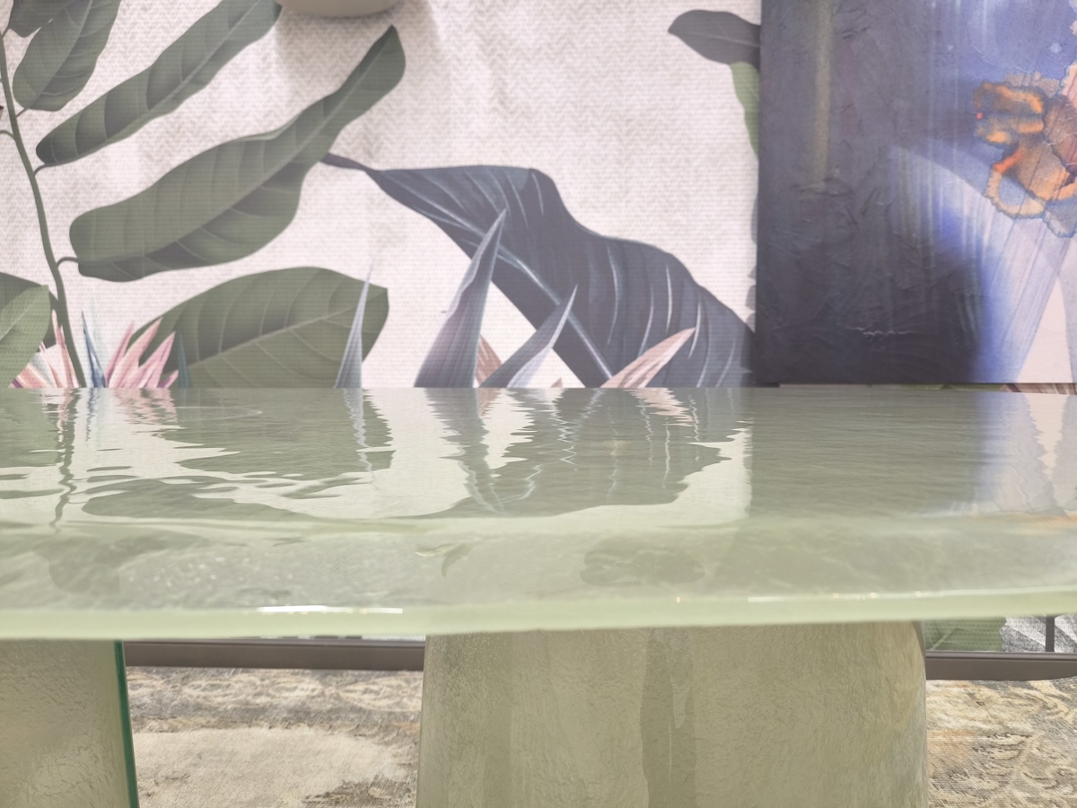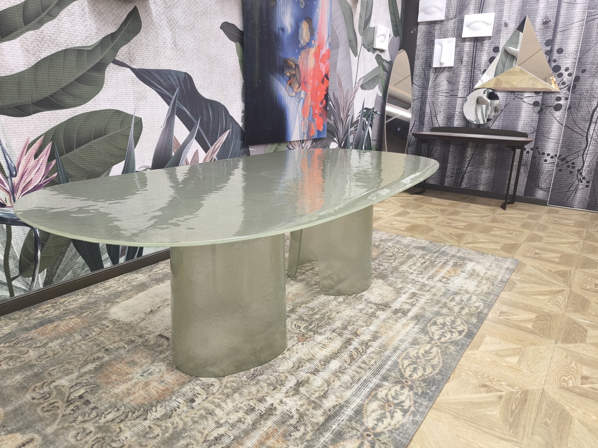 Изысканная грация воплотилась в этом удивительном столе, где стекло становится главным действующим лицом, танцующим в ритме природных изгибов. Cinnamon изготовлен полностью из литого стекла — основание, отлитое с ювелирной точностью, повторяет естественные изгибы коричной палочки, создавая завораживающий скульптурный силуэт. Плавно наклонённая кромка столешницы создает эффект лёгкого приглашения присесть, а её деликатное скругление перекликается с общей текучестью формы. Стол в цвете мятного тумана выглядит как кусочек застывшей прозрачной воды с лёгкой бирюзовой дымкой. Исполненный бронзовом оттенке придаёт пространству глубину и теплоту солнечных бликов. Cinnamon очаровывает с первого взгляда своей чувственной эстетикой, рождая новый стандарт интерьерной роскоши.