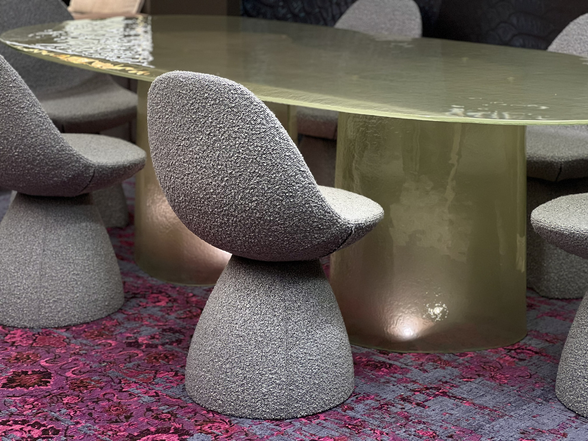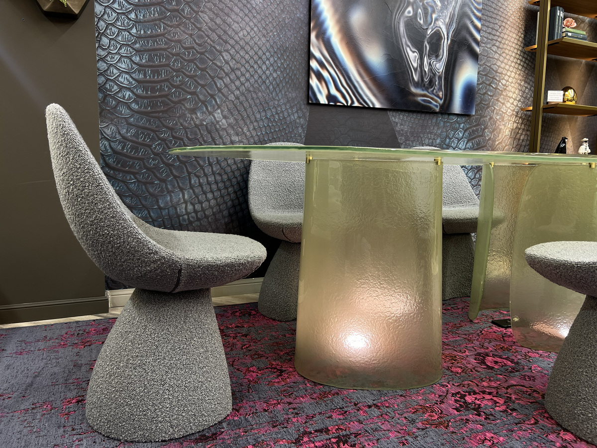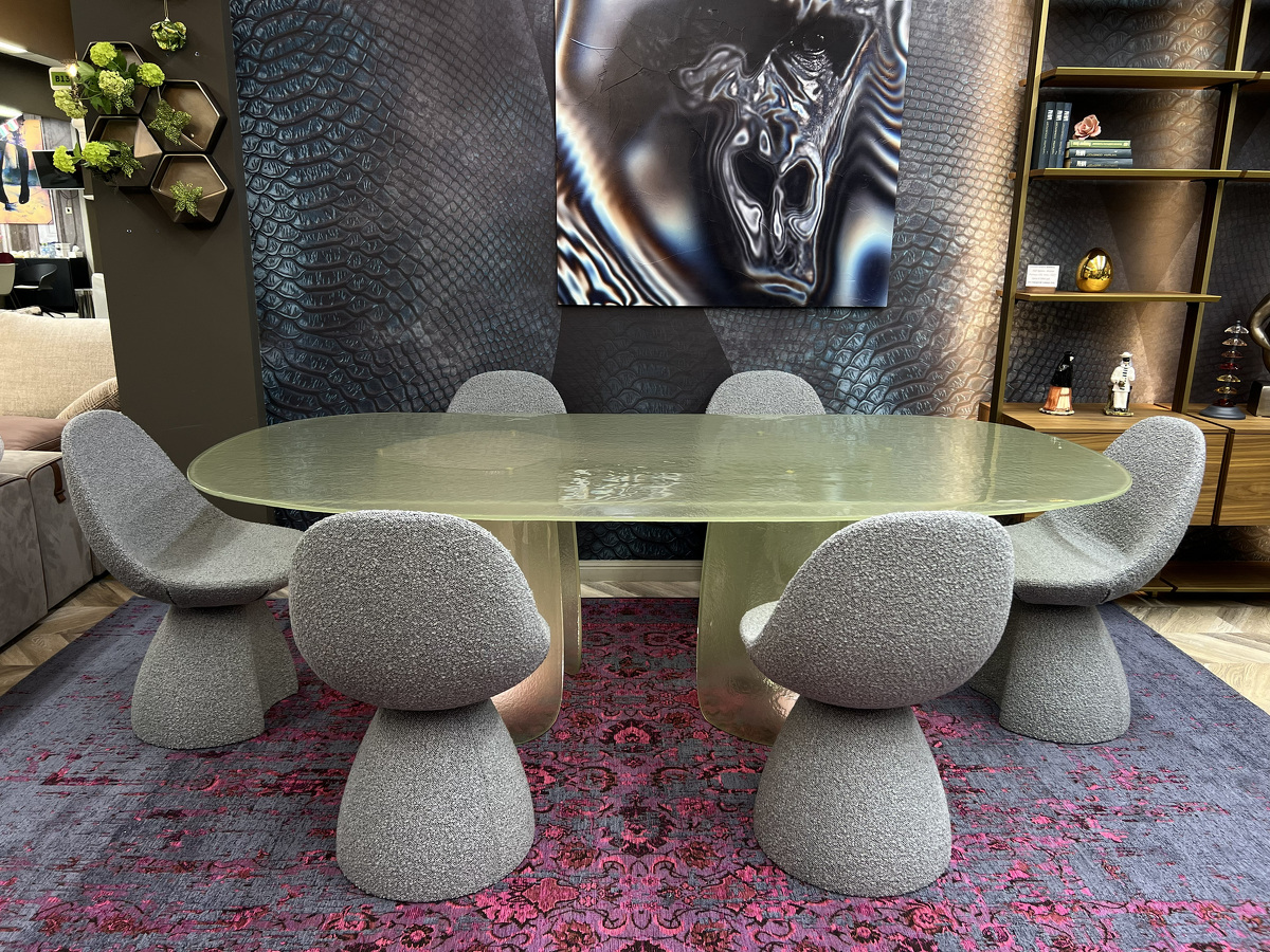 Изысканная грация воплотилась в этом удивительном столе, где стекло становится главным действующим лицом, танцующим в ритме природных изгибов. Cinnamon изготовлен полностью из литого стекла — основание, отлитое с ювелирной точностью, повторяет естественные изгибы коричной палочки, создавая завораживающий скульптурный силуэт. Плавно наклонённая кромка столешницы создает эффект лёгкого приглашения присесть, а её деликатное скругление перекликается с общей текучестью формы. Стол в цвете мятного тумана выглядит как кусочек застывшей прозрачной воды с лёгкой бирюзовой дымкой. Исполненный бронзовом оттенке придаёт пространству глубину и теплоту солнечных бликов. Cinnamon очаровывает с первого взгляда своей чувственной эстетикой, рождая новый стандарт интерьерной роскоши.