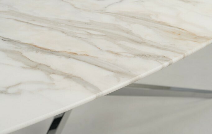 Основание стола выполнено из прочного литого алюминия, а столешница — из керамогранита, свойства которого напоминают натуральный камень. Благодаря высокой прочности, столешница обеспечивает чистоту, водостойкость и стабильность цвета.