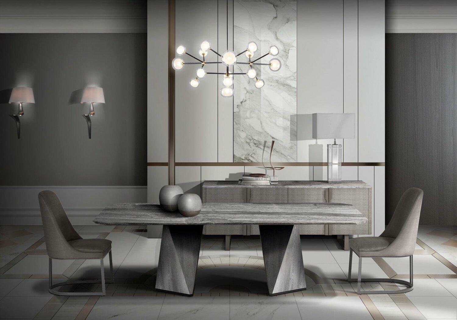 Стол итальянский обеденный Diamont столешница из натурального мрамора основание шпон и металл