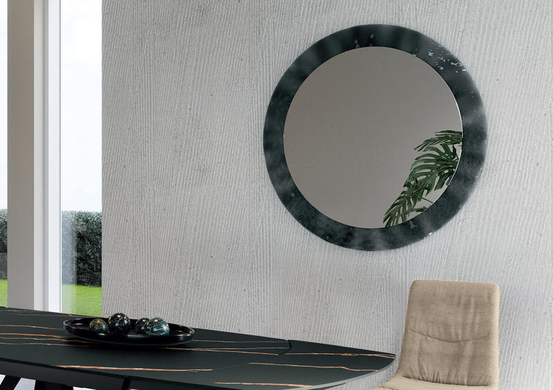 Зеркало итальянское дизайнерское круглое Iride Fume Stones на раме из запеченного стекла дымчатое