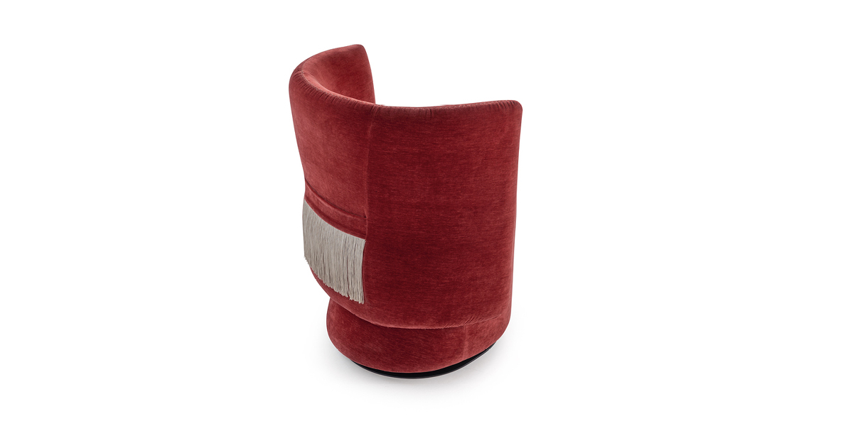 Кресло итальянское Dona G поворотное округлой формы компактное с декором в виде бахромы
