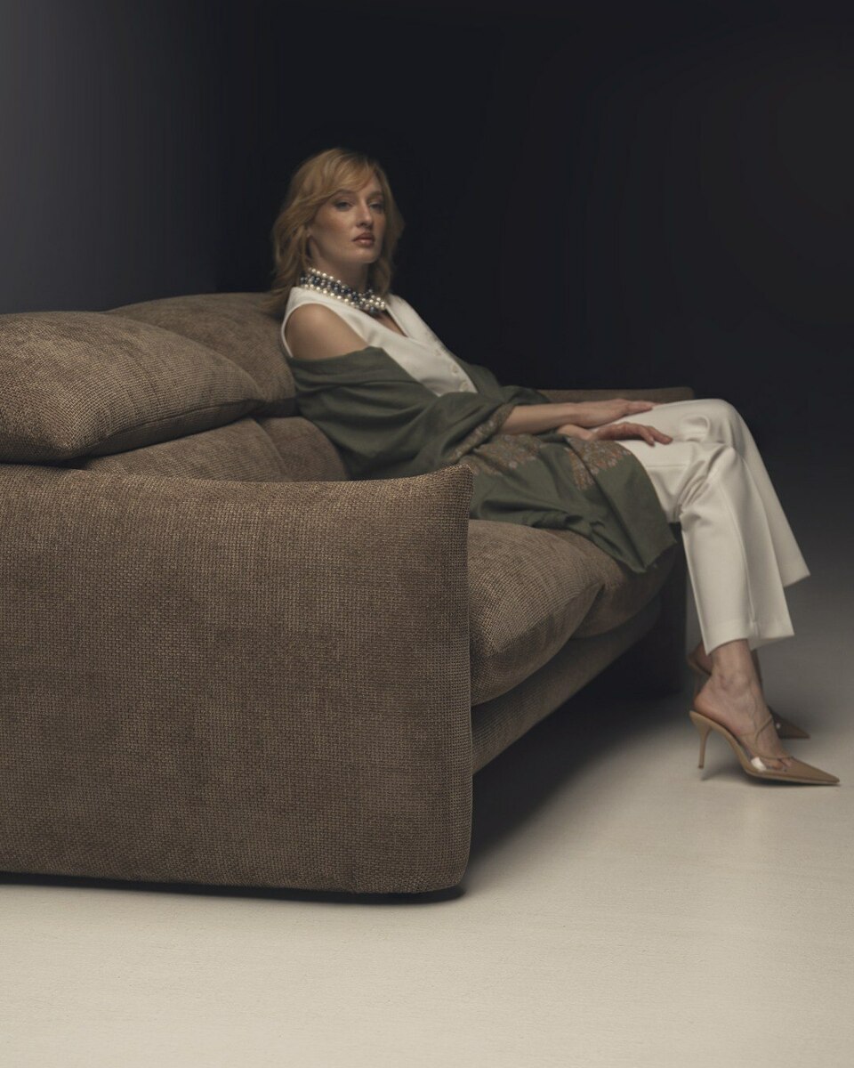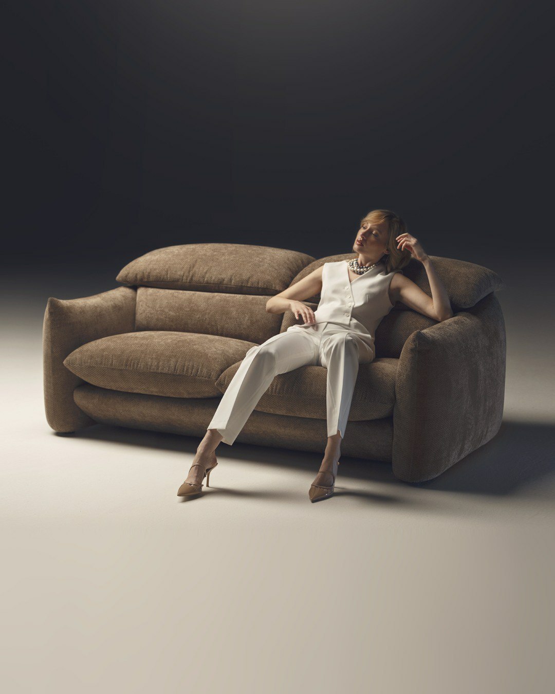 Диван итальянский Choco Magic с объемными и мягкими формами и регулируемым подголовником