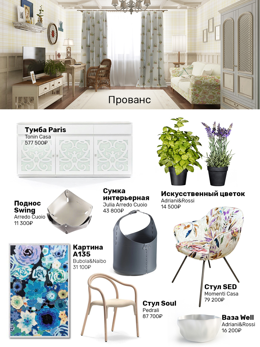 Представьте дом на склоне живописного холма, где в окна дует лёгкий ветер с полей лаванды, а в воздухе разлит аромат тимьяна и свежеиспечённого хлеба. Прованс — это не просто стиль, это ощущение вечного лета, простоты и изысканной небрежности. Цветовая основа — в мягких, выгоревших тонах: пудрово-голубом, тёплом бежевом, лавандовом, мятном — будто их отбелили солнце и время. Шкафы и комоды с резными фасадами, кресла и стулья с гнутыми ножками, отделанные льном, хлопком или ситцем с цветочным рисунком. Аксессуары — как найденные сокровища: глиняные горшки с пряной зеленью, фарфоровые вазы, плетёные или кожаные корзины, старинные часы с кукушкой, книги в потрёпанной обложке. Прованс — это приглашение к жизни, напоённой светом и теплом.