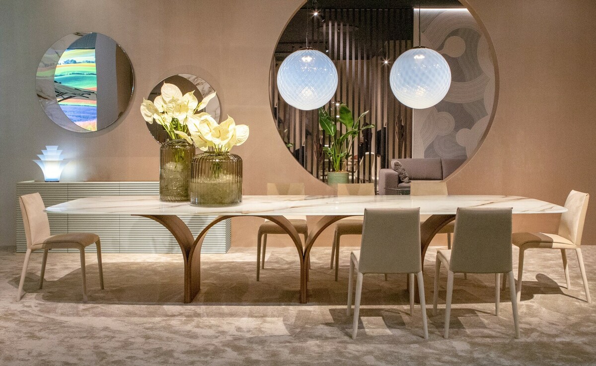 Сейчас, когда жилая площадь стала просторней за счет новых форматов городской застройки и возможностью обзавестись капитальным загородным жильем, мы все чаще хотим вернуться к традиционным ценностям. В определенной степени мы уже прошли этап, когда большие домашние праздники были вытеснены ресторанными услугами. Ресторан перестал быть чем-то статусным, а скорее, наоборот, стал упрощенной альтернативой званому ужину, не требующей особой суеты. Конечно, можно найти и более простое объяснение – отсутствие главного персонажа и залога гостеприимства, а именно, большого стола. Скорее всего, такая тенденция свойственна не только России, так как одновременно в 2025 году почти все известные итальянские бренды ввели в свои коллекции столы с длиной, начинающейся от 3500 сантиметров.