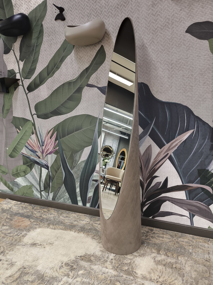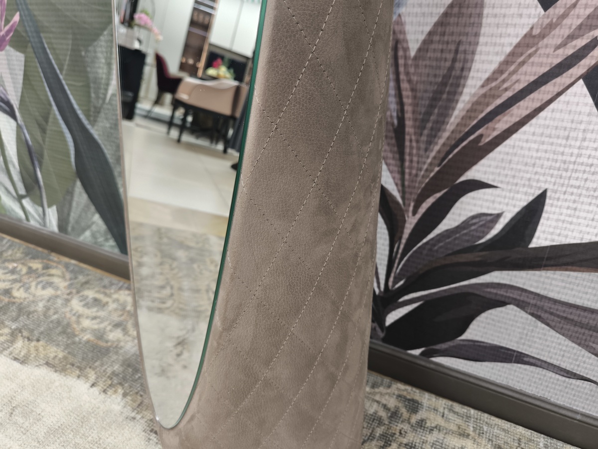 Зеркало, обтянутое кожей или экокожей.