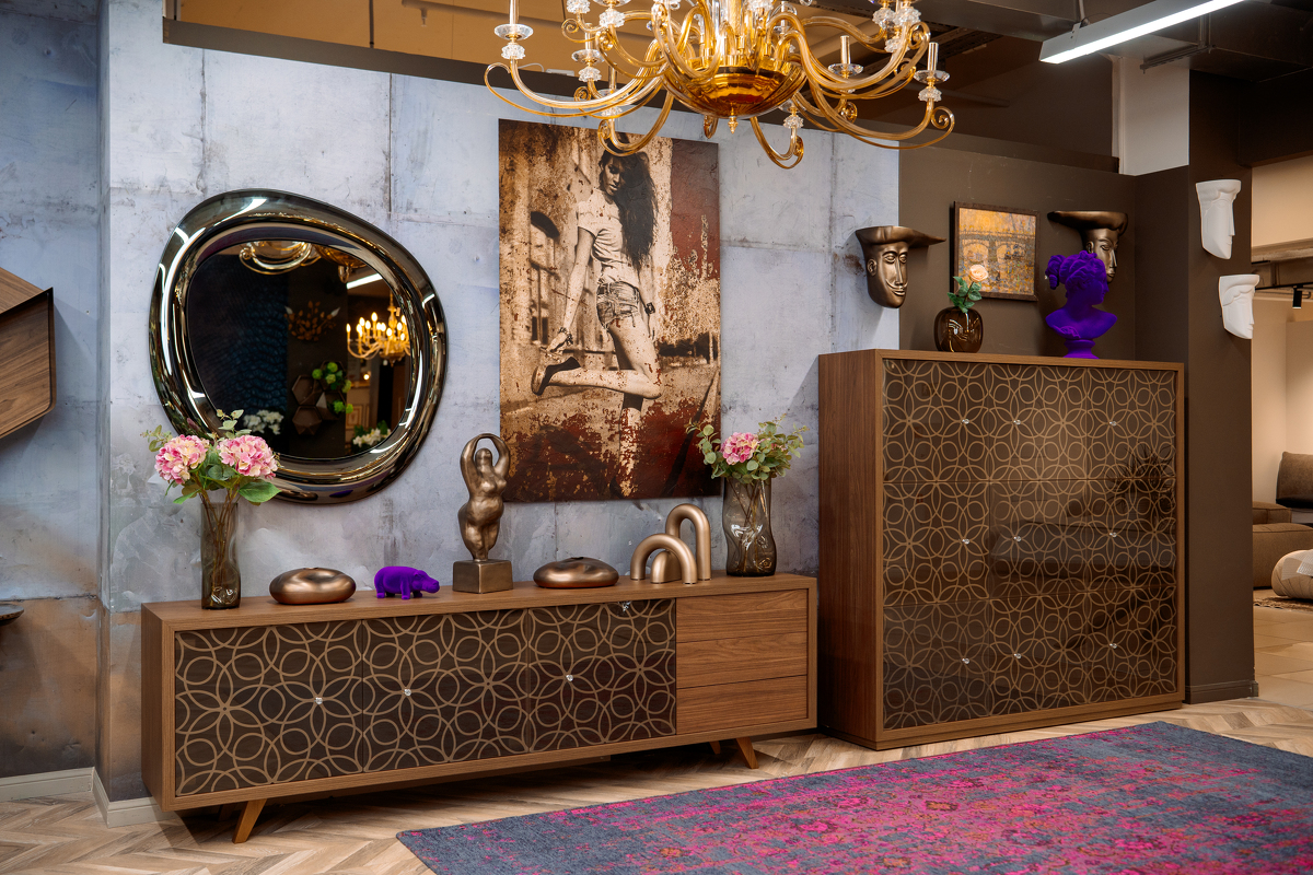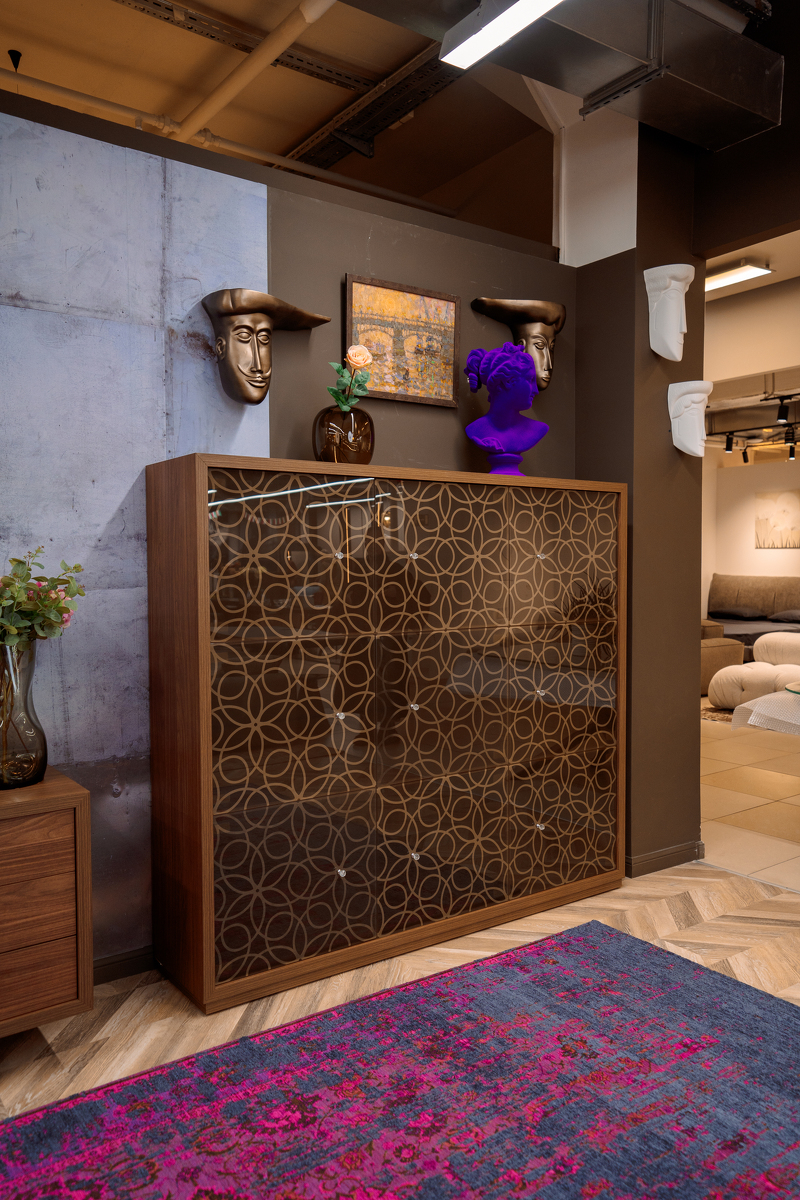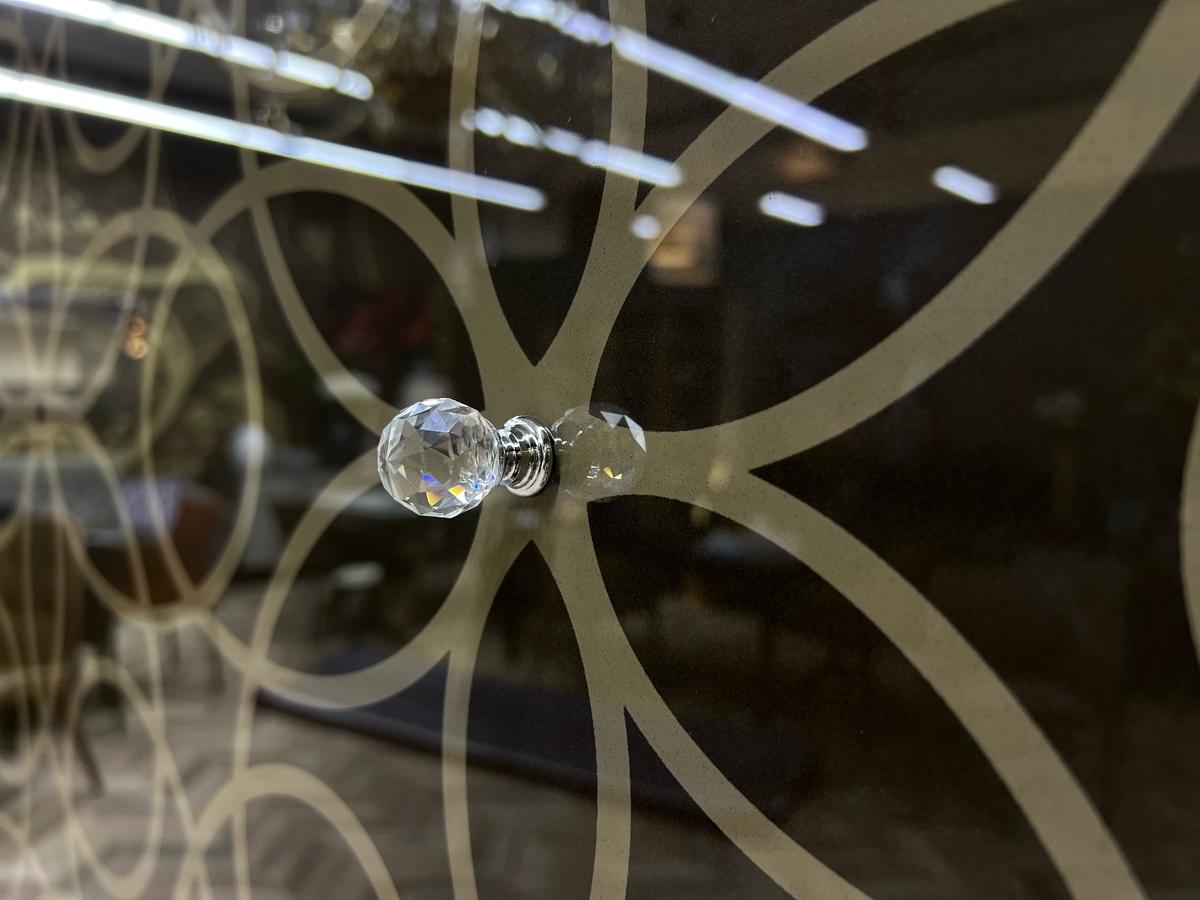 100% Made in Italy. Высокий уровень. Коллекция Design Couture. Дизайн от Angelo Tomaiuolo. Драгоценные детали. Фасады со сложным кружевным узором, ручки, имитирующие бриллианты Время изменить себя и все вокруг. Дизайн мебели трансформируется в создание произведения ювелирного искусства. Программа Granada состоит из тумб и витрин различных модификаций. Каркас изготовлен из дерева в отделках noce canaletto и rovere scuro . Стекло-бронзовое прозрачное или бронзовое оксидное.Ручки - Swarovski.