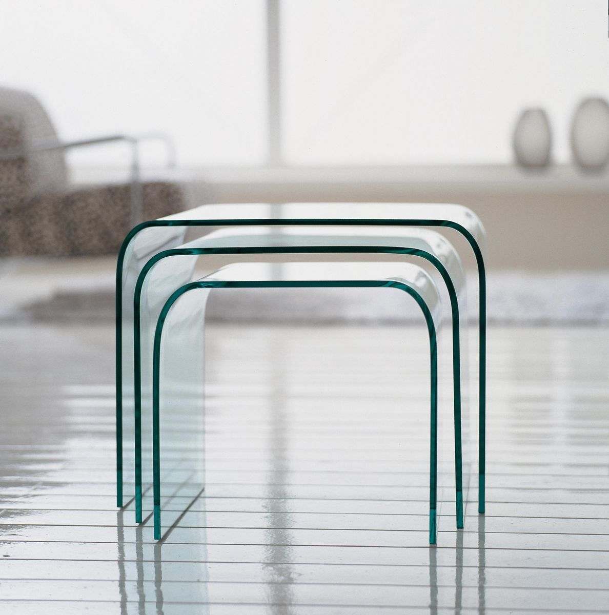 100% Made in Italy. Высокий уровень. Коллекция My Home. Журнальный стол из закаленного гнутого стекла прозрачного, бронзового, дымчатого, черного или экстрапрозрачного цвета..