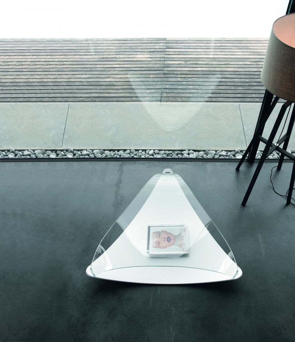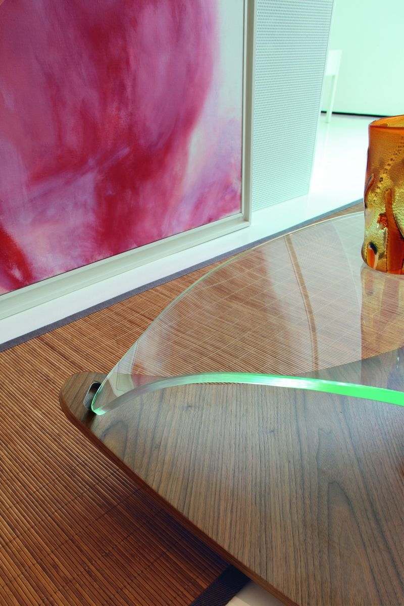 Коллекция Life in Style. 100% Made in Italy. Высокий уровень. Столик журнальный из гнутой МДФ, окрашенной в белый цвет или шпонированной в отделке орех. Стекло закаленное гнутое, прозрачное или экстрапрозрачное.