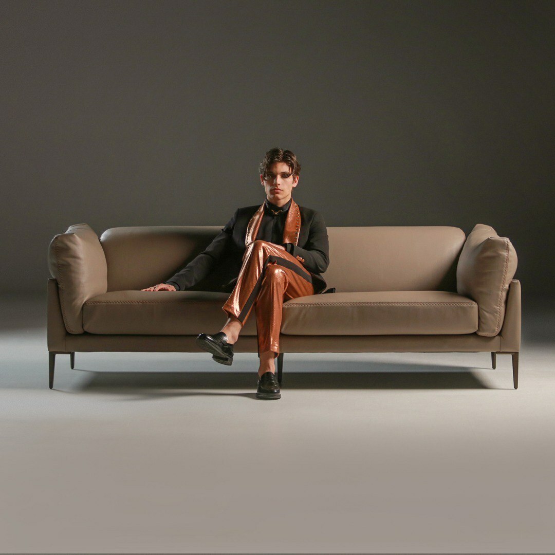 Диван итальянский кожаный Elisir Calia Italia Италия с регулируемой спинкой на тонких ножках