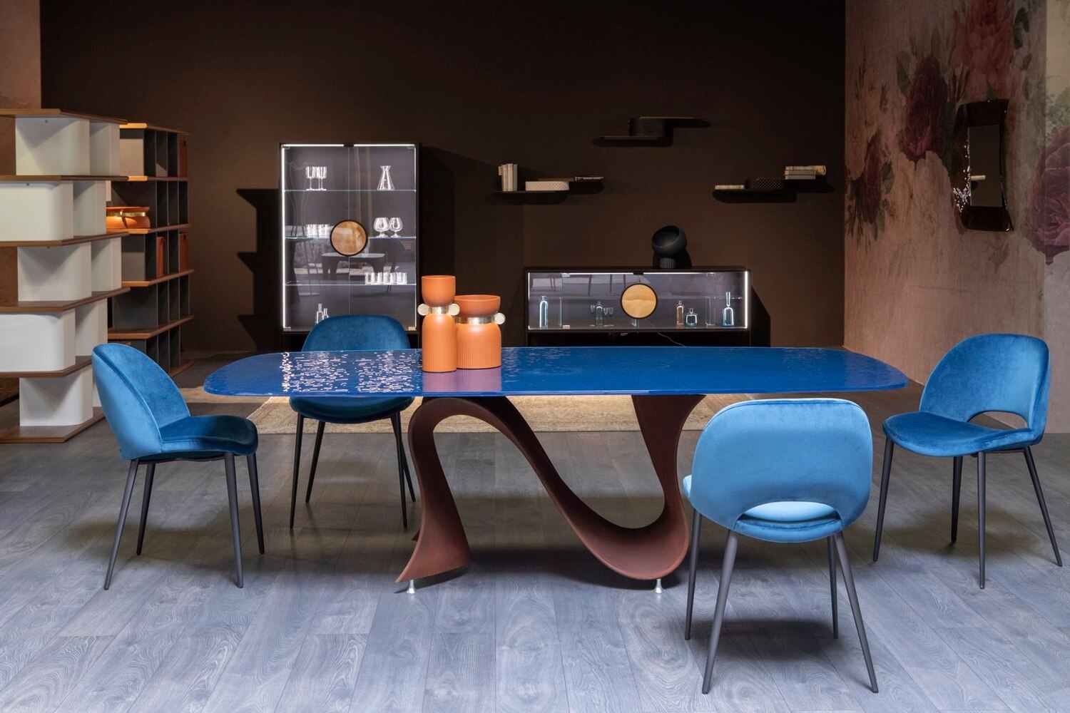 Скульптурное основание обеденного стола Wave от Tonin Casa с закрученным волнообразным узором мгновенно подчеркивает стиль помещения. Благодаря большому пространству на небесно-синей столешнице, у вас будет достаточно места, чтобы наслаждаться присутствием гостей.