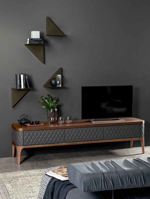 3-дверная деревянная тумба для телевизора с ромбовидным стеганым покрытием ручной работы