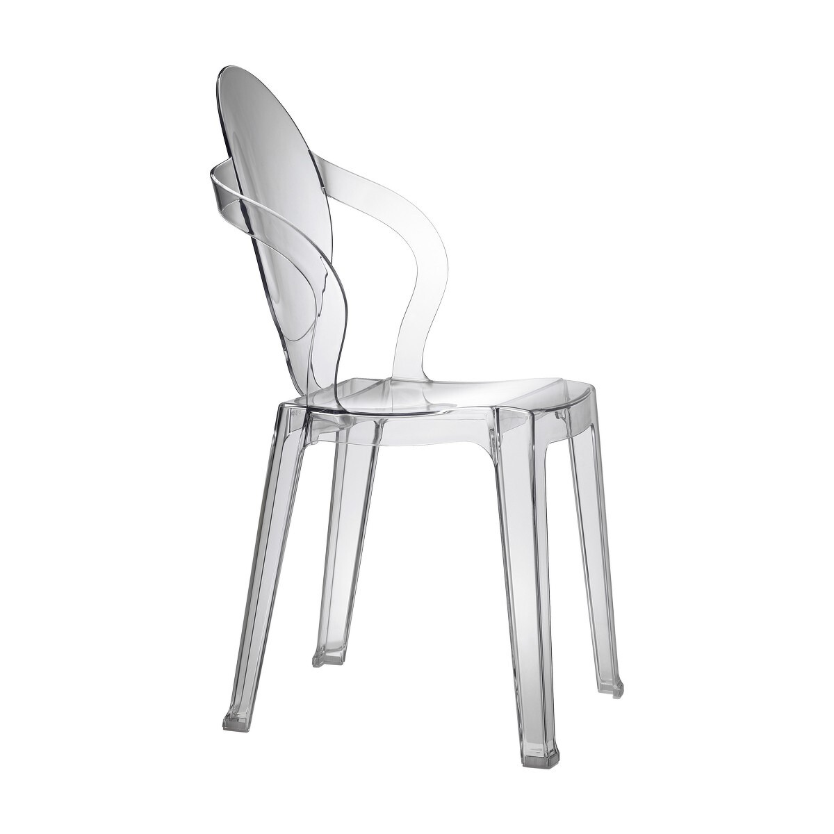 Стул изготовлен из переработанного поликарбоната, прозрачного или прозрачного окрашенного. Слегка вогнутая спинка объединяет в себе современную гармонию линий и практичную способность к штабелированию, делая стул универсальным в использовании indoor и outdoor.