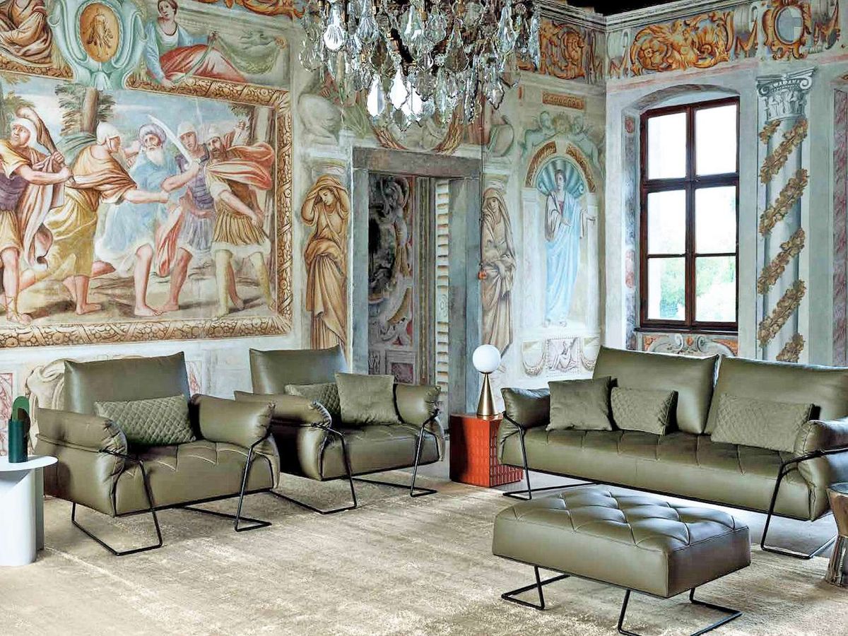Обивка дивана воскрешает традиции ремесленного мастерства с его мудростью и знаниями. Сложная работа, выполненная для чехла сиденья и спинки заключается в соединении воедино изначально по отдельности простеганных ромбов и создании тем самым эффекта capittone. Необыкновенный комфорт дивана обязан повышенной мягкости спинки и подлокотников, а также использованию пуха.
