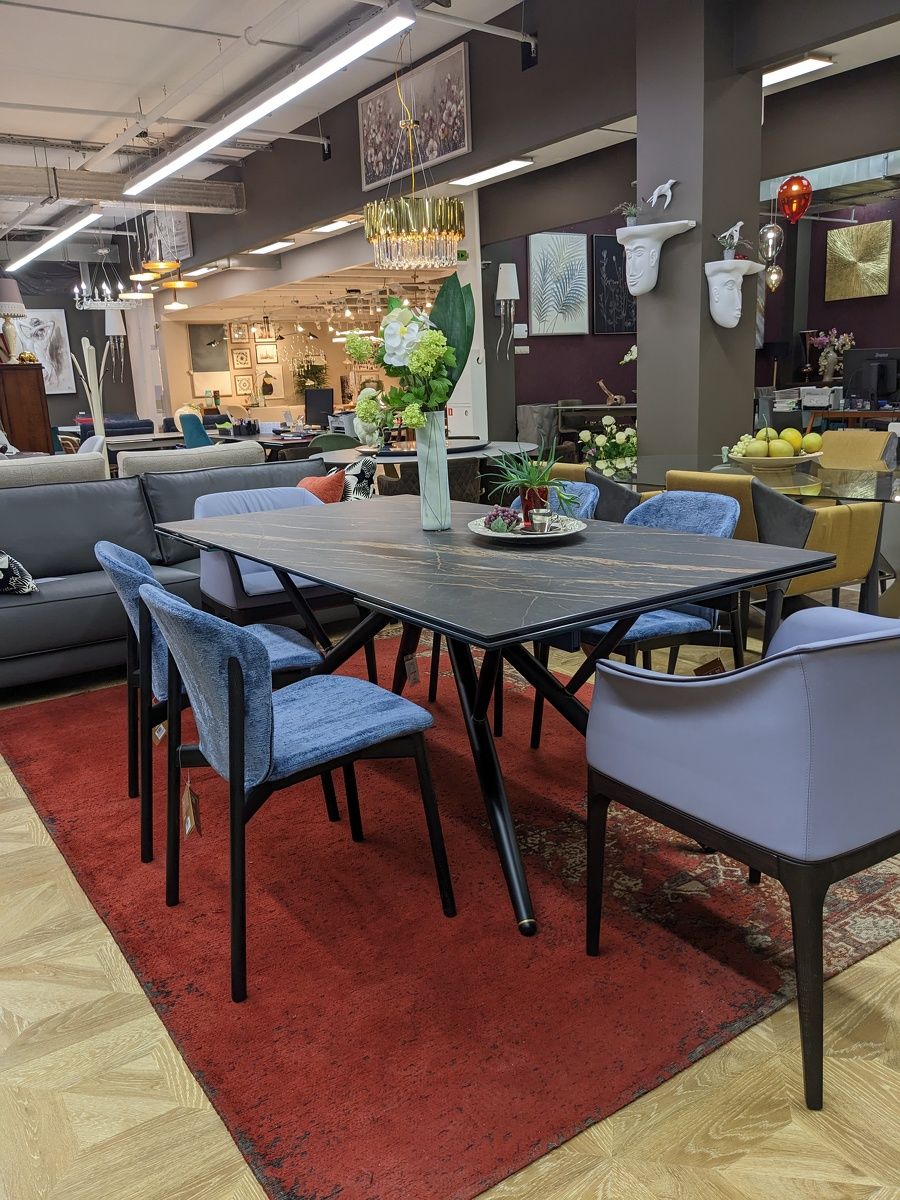 На экспозиции представлен раскладной стол со столешницей из керамогранита толщиной 14 мм.