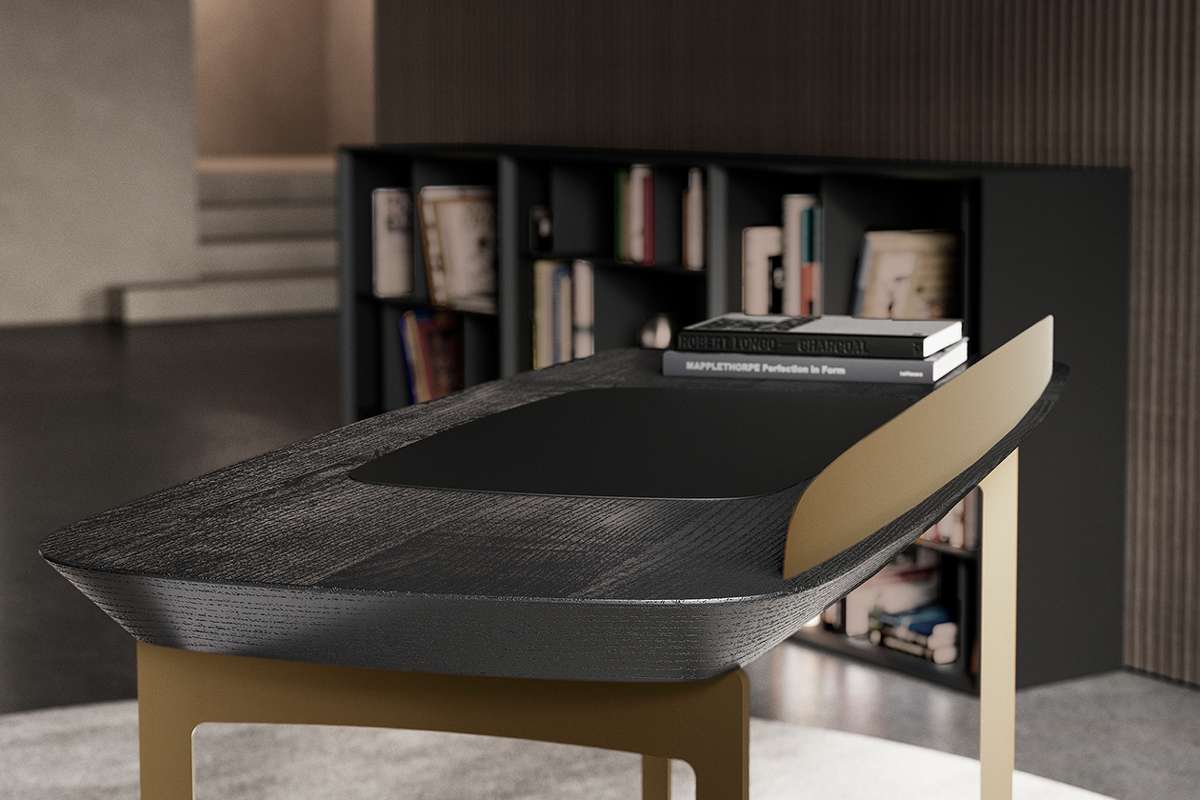Icon Desk - это письменный стол, в основе дизайна которого лежит классика из не очень далекого прошлого в интерпретации актуальных тенденций и современности. Icon Desk продуман до мелочей. Это тот объект интерьера со своей историей, с которым оживает весь интерьер. Спроектированный дизайнером Ollen Pal, стол Icon Desk выполнен на металлическом основании. Столешница шпонированная с металлическим бортиком. Отличительный элемент дизайна стола - это тонкие ножки из окрашенного металла. Этот изысканный и элегантный столик может быть использован и как туалетный столик благодаря удобному зеркалу с фацетом. По запросу возможен дополнительный кожаный коврик для рабочей поверхности.