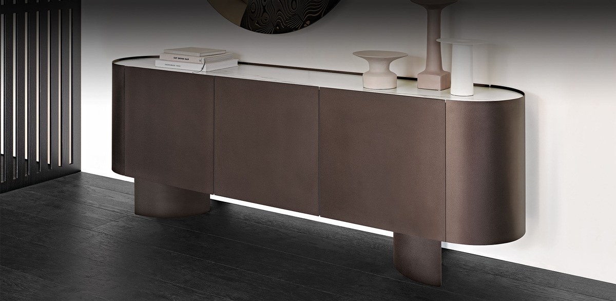 Джорджио Каттелан выбрал изысканную керамическую отделку Marmi для украшения верхней части модели Savoy, дизайнерского буфета, созданного его воображением. Обладая необходимой и компактной формой, Savoy производит впечатление именно благодаря этой неповторимой детали премиум-класса. Этот современный сервант воплощает в себе суть дизайна Cattelan Italia. Он предлагает максимальный комфорт, вместительность и практичность с изысканным внешним видом, подходящим для улучшения дизайна гостиной, благодаря извилистым изгибам по бокам и ножкам. Керамическую столешницу можно выбрать из широкого ассортимента привлекательных оттенков, от самых светлых и ярких до самых темных и насыщенных.
