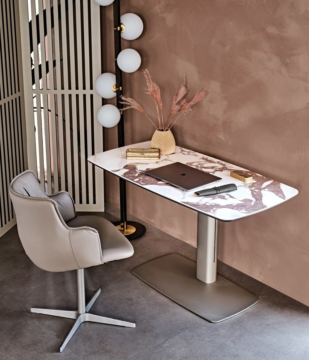 Паоло Каттелан разработал письменный стол Runner для повседневного использования, уделяя особое внимание функциональности и комфорту. Высота этого регулируемого стола может быть легко изменена благодаря хитроумному электронному рычагу, способствующему правильной осанке в положении сидя и позволяющему использовать его стоя. Хотя эргономический аспект занимает центральное место, нельзя игнорировать изысканные детали и отделку, которые подчеркивают этот дизайнерский стол, изготовленный из высококачественных материалов. Семейство Runner выпускается с керамическим, деревянным или кожаным верхом, что дает жизнь моделям Runner Keramik, Runner Wood и Runner Leather.