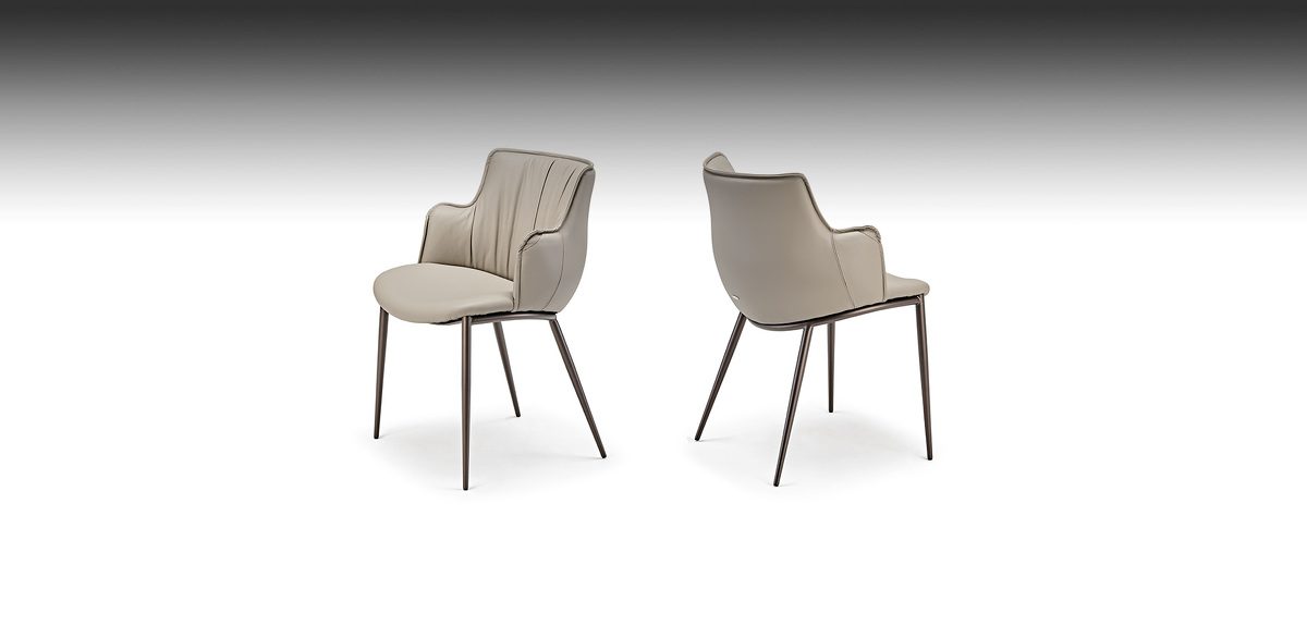 Мягкие складки, украшающие внутреннюю часть спинки, контрастируют с тугим и округлым корпусом. В нижней части спинки глубокая структура и соединение ножек подчеркивают мягкость изгибов. Дизайн с мягкими линиями, которые обволакивают тело, поддерживают осанку и превращают современную столовую в уютную обстановку, в которой можно чувствовать себя как дома.