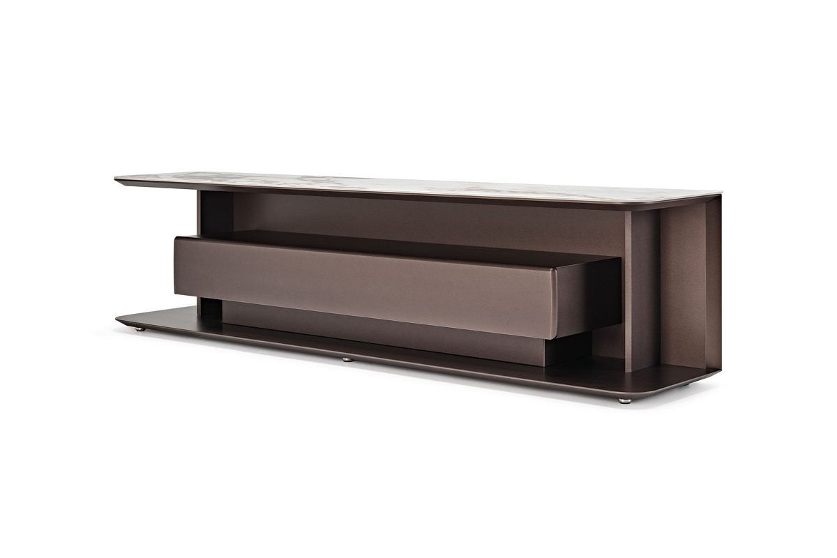 Дизайнерская подставка для телевизора, отличающаяся отсутствием закрытых дверей, за исключением большого центрального выдвижного ящика. Таким образом, дизайн Паоло Каттелана включает в себя множество открытых отсеков, которые только и ждут, чтобы их дополнили предметами. Внешний вид напоминает современную подставку для телевизора, но с сильным декоративным элементом. Что больше всего отличает Award, так это изысканная керамическая столешница Marmi, которую можно настроить, выбрав один из множества привлекательных оттенков. Эстетика и функциональность объединены в этом дизайнерском телевизионном шкафу, о чем свидетельствует открытое отделение между выдвижным ящиком и верхней частью, оснащенное практичной направляющей для кабеля и подходящее для размещения электронных устройств. Это элегантное изделие дополнено такими утонченными деталями, как изогнутые передние края, наклонный профиль, узкие боковые панели и небольшое возвышение над полом. Невозможно не быть очарованным.