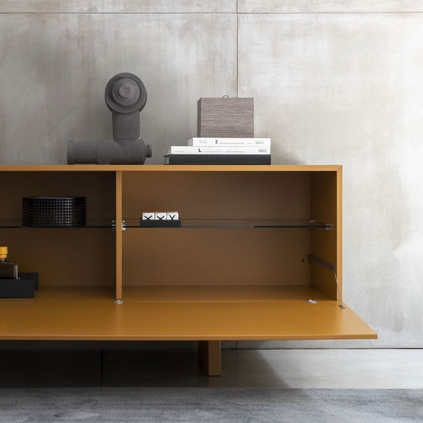 Ella - это тумба со структурой из МДФ, покрытая лаком всех цветов в соответствии с образцами или термообработанным черным дубом. Тумба с линейным дизайном благодаря простым и чистым элементам, расположенным рядом и наложенным друг на друга, из открытых и закрытых элементов, которые приобретают архитектурный характер в любой комнате дома.