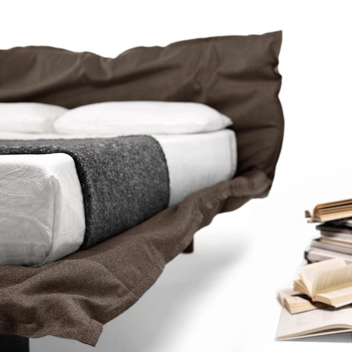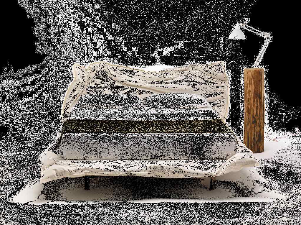 Двуспальная кровать с мягкой обивкой, принимающая любую форму. Мягкие очертания так и манят к приятным сновидениям.