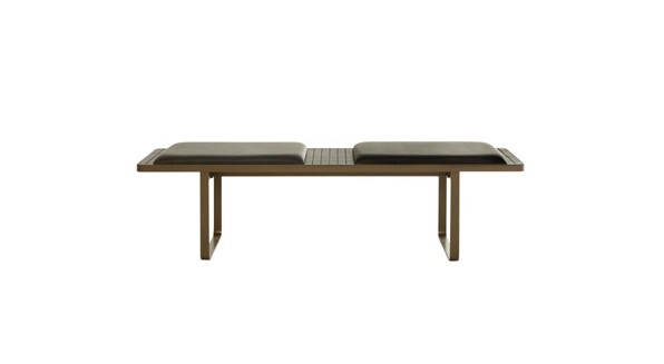 Банкетка Ginger воплотила в себе идеальную гармонию линий и форм. Лёгкий силуэт и ритмический квадратный рисунок сиденья создают эффект графической строгости, который подчёркивается контрастом двух мягких подушек, обтянутых гладкой чёрной кожей. Все элементы гармонично сочетаются друг с другом, придавая Ginger элегантный и одновременно лаконичный вид. Металлическое основание цвета бронзы в сочетании с сиденьем из дерева завершает образ, дополняя общую палитру используемых цветов и материалов. Изумительное сочетание чёрного цвета и геометрического рисунка делает Ginger стильным акцентом в спальне или прихожей, подчёркивающим общий стиль пространства.