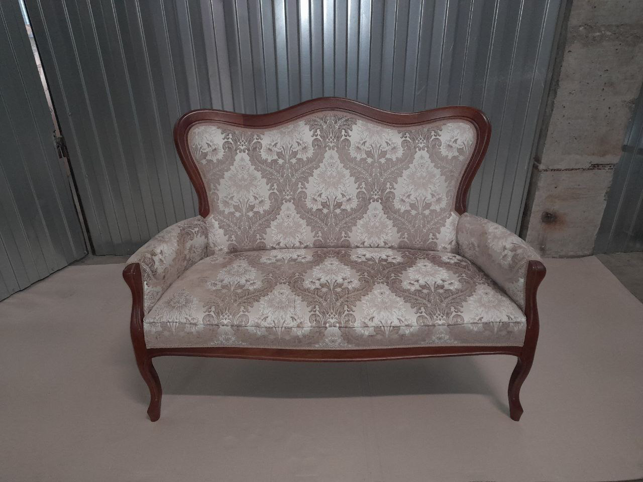 Классический диванчик на деревянном основании. Прекрасный вариант как небольшой диван в кабинет, в прихожую или для уютного уголка для отдыха рядом с кофейным столиком. Классическая обивка дополняет резьбу на деревянном каркасе. Отделка под орех впишется в любой интерьер. Длина 130 Глубина 70 Высота 100 Высота сиденья 44