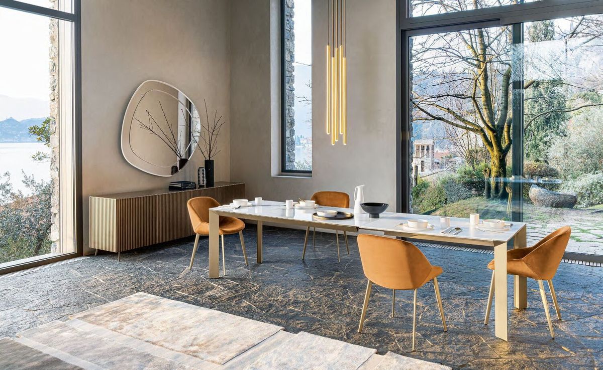 Стол итальянский обеденный раскладной Manhattan Riflessi на 4 ногах с керамической столешницей