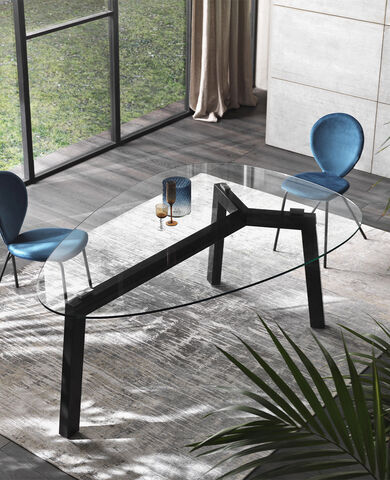 Четкие линии и изысканный, оригинальный дизайн определяют стиль нераскладного стола Treble. Стол является воплощением опыта в инновационных решениях модного бренда Riflessi. Прочная алюминиевая основа уникальной формы, имеет чрезвычайно тонкую конструкцию, создающую удивительный эффект баланса и гармонии.