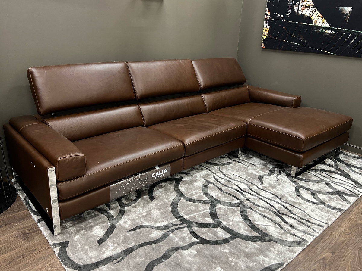 Кожаный итальянский диван с реклайнером Romeo Relax Calia Italia Италия с шезлонгом