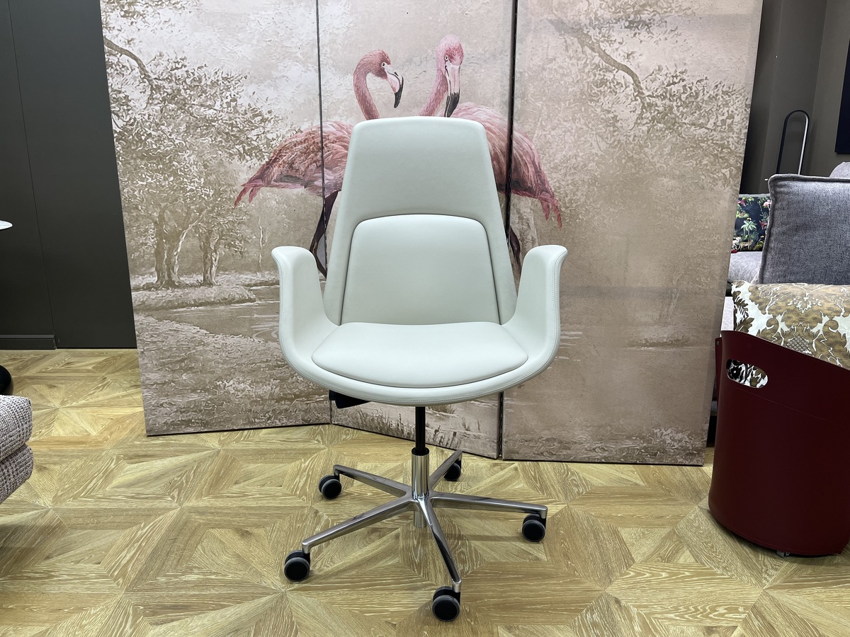 Элегантное офисное кресло из натуральной кожи с лаконичным дизайном. Эргономичные формы и линии, заимствованные из автомобильного дизайна для универсального кресла для домашнего кабинета или рабочего офиса.