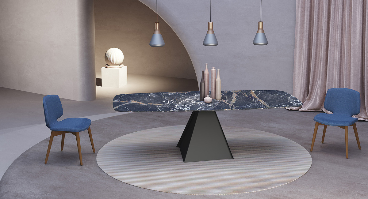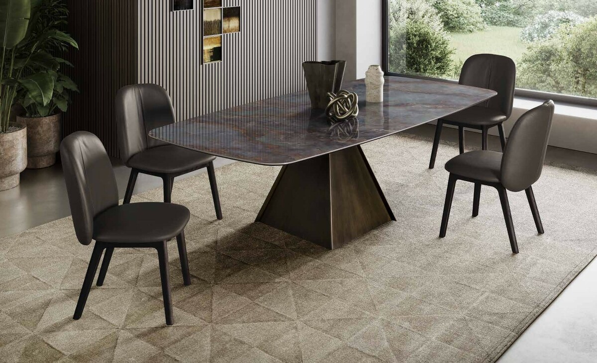 Форма усечённой пирамиды придаёт столу элегантность и гармонию, создавая ощущение баланса. Тёмный цвет основания подчёркивает изысканность и благородство, делая Monty прекрасным дополнением к любому интерьеру.
