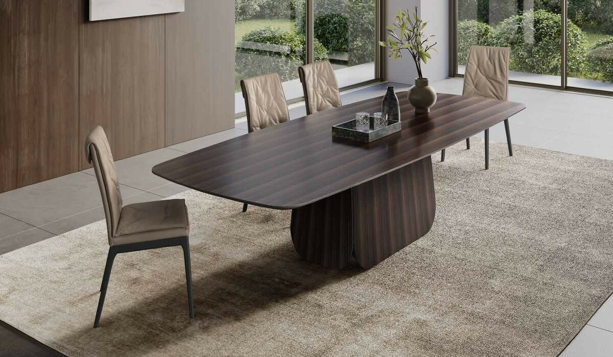 Идеальное сочетание практичности и эстетической привлекательности. Простая и изящная конструкция состоит из четырёх панелей в форме суперэллипса, которые могут контрастировать или гармонировать с поверхностью столешницы по цвету и текстуре. Стол предлагает обширные возможности для экспериментов с различными сочетаниями материалов.
