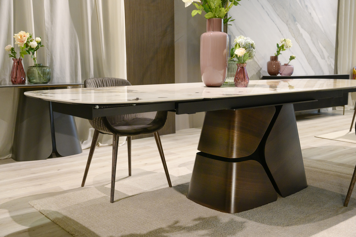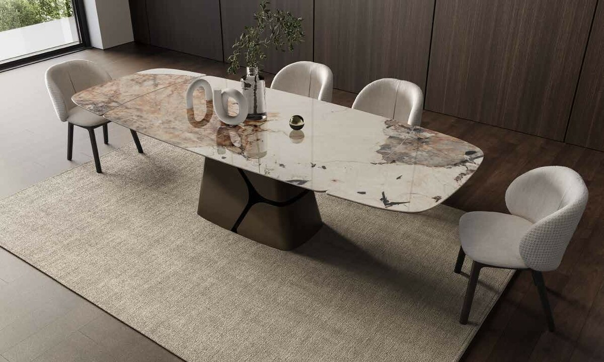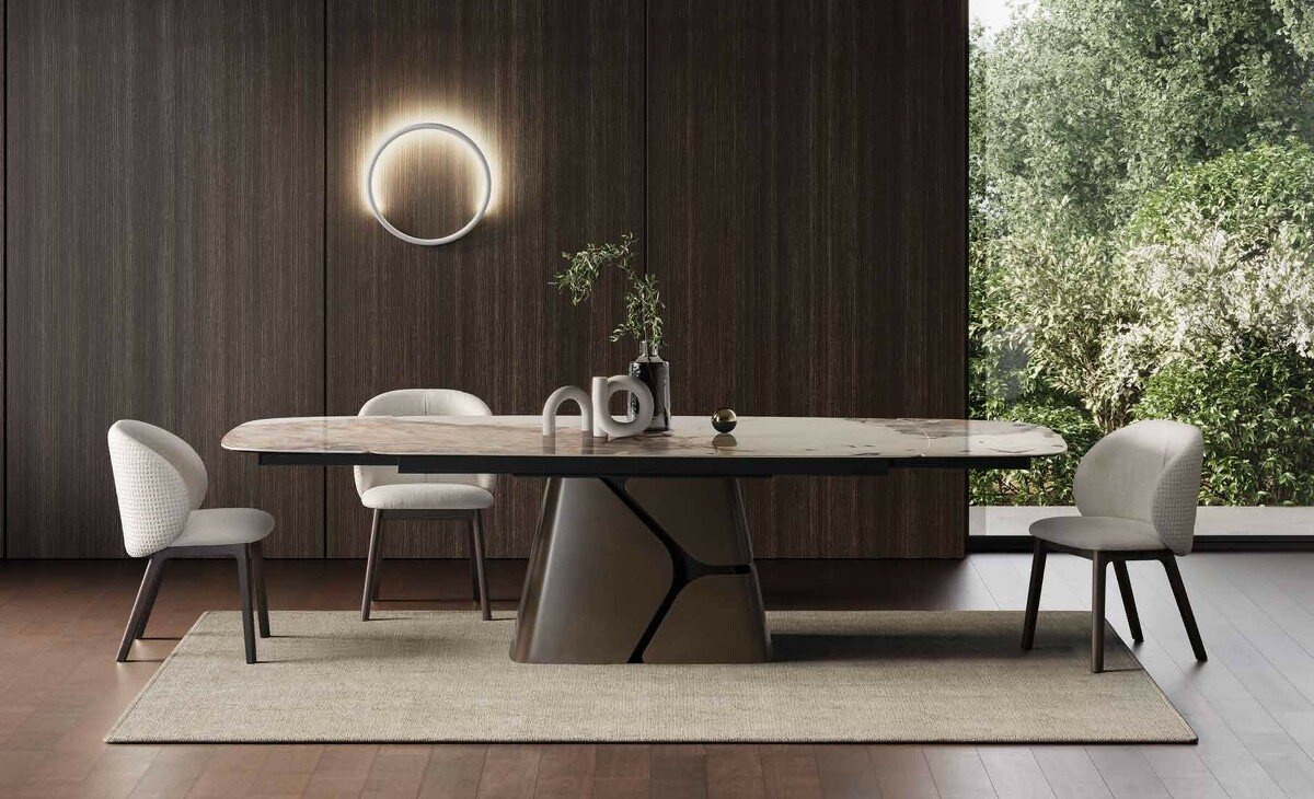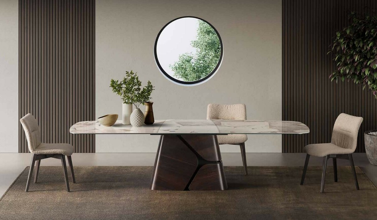 Стол обеденный итальянский раскладной Wall с керамической закругленной столешницей Tafaruci