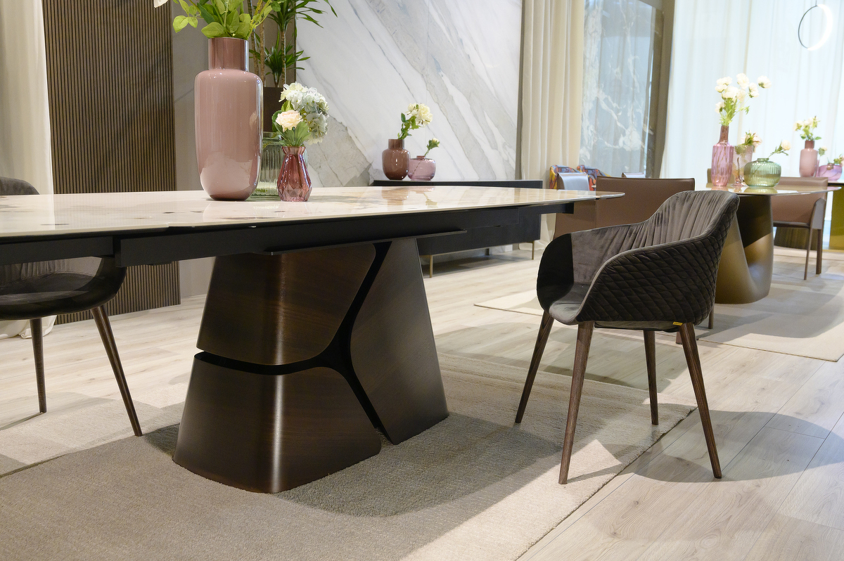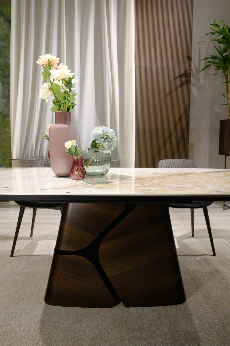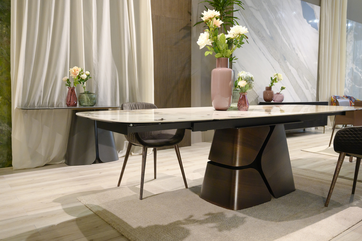 Стол обеденный итальянский раскладной Wall с керамической закругленной столешницей Tafaruci