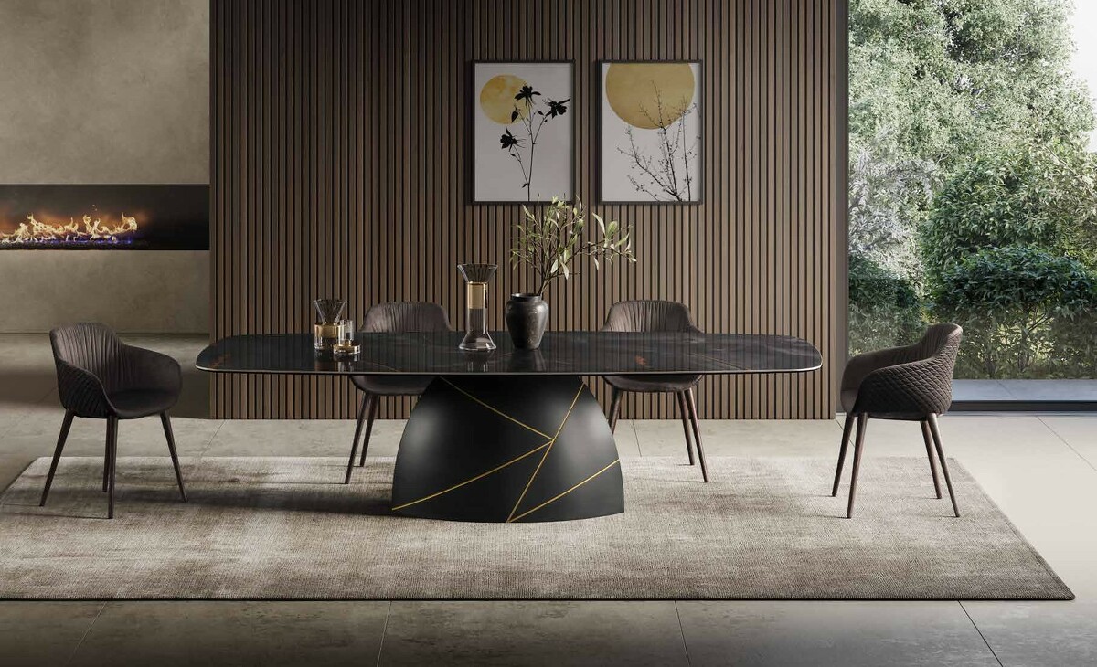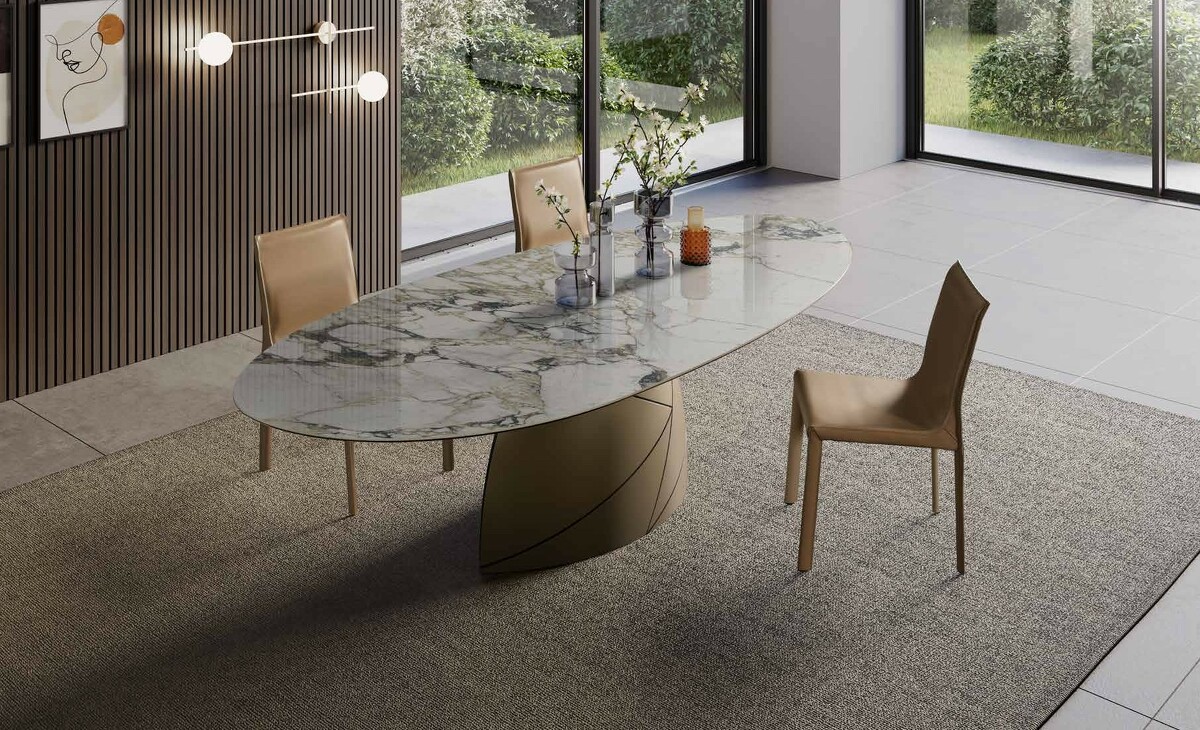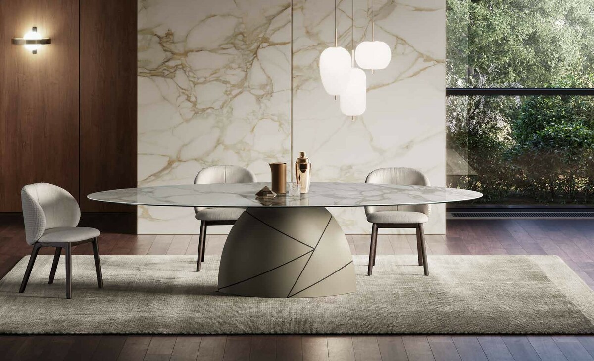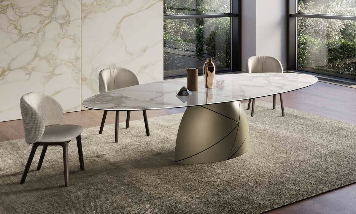 Стол обеденный большой Shark с керамической закругленной столешницей Tafaruci