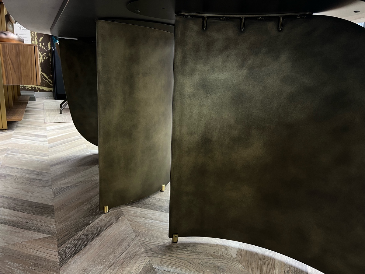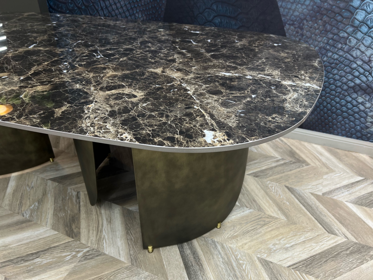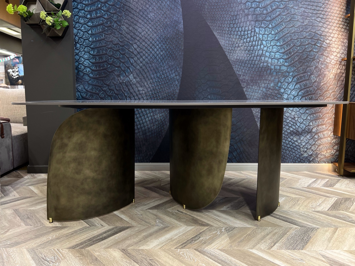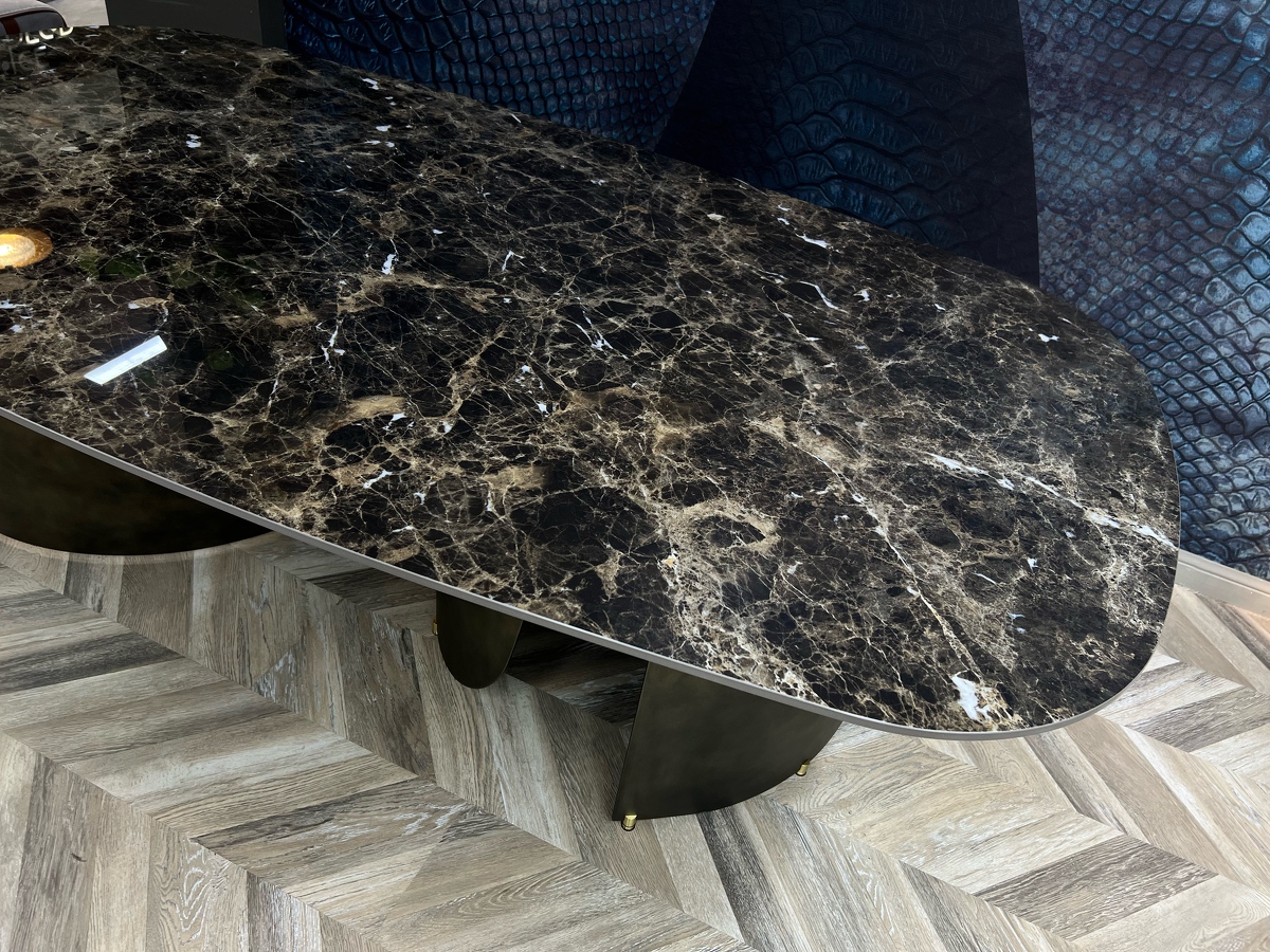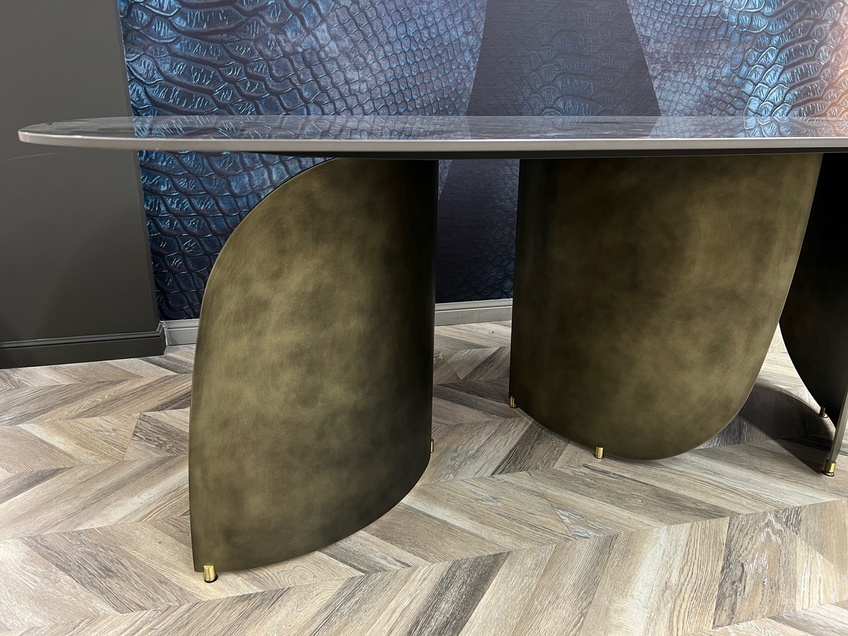 Стол Sail олицетворяет собой эстетическое и конструктивное решение, напоминающее развёрнутые паруса. Его тонкое и лёгкое основание подчёркивает плоскость столешницы, которая спокойно парит, контрастируя с сочетанием резких изгибов яхтенного паруса. Обработанная Бронза и столешница из дерева, керамики или мрамора придают столу объём и прочность.