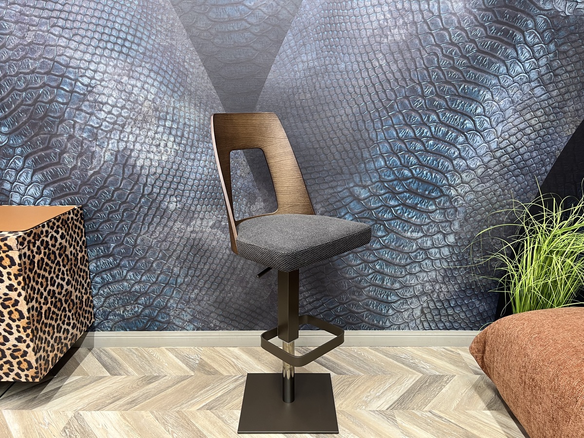 Барный стул City представляет собой изысканное сочетание дерева и мебельного твида. Благородное серо-коричневое сиденье с выразительным текстурным рисунком гармонично дополняется спинкой, отделанной натуральным обожженным орехом. Спокойное и элегантное сочетание оттенков и фактур делает этот стул незаменимым элементом лаконичного мужского интерьера, особенно если речь идет о гостиной с баром-островом и теплым освещением.