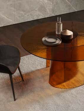 Стол обеденный Aria - это настоящее произведение искусства из цветного стекла. Плавные изгибы основания и лёгкая столешница создают уникальную атмосферу, позволяя наслаждаться красотой стола с разных ракурсов. Элементы основания в форме арок придают столу монументальность и одновременно лёгкость, меняя восприятие в зависимости от угла обзора. Прозрачное основание и столешница пропускают свет, делая стол похожим на текучий янтарь, который мерцает в игре теней и отражений.