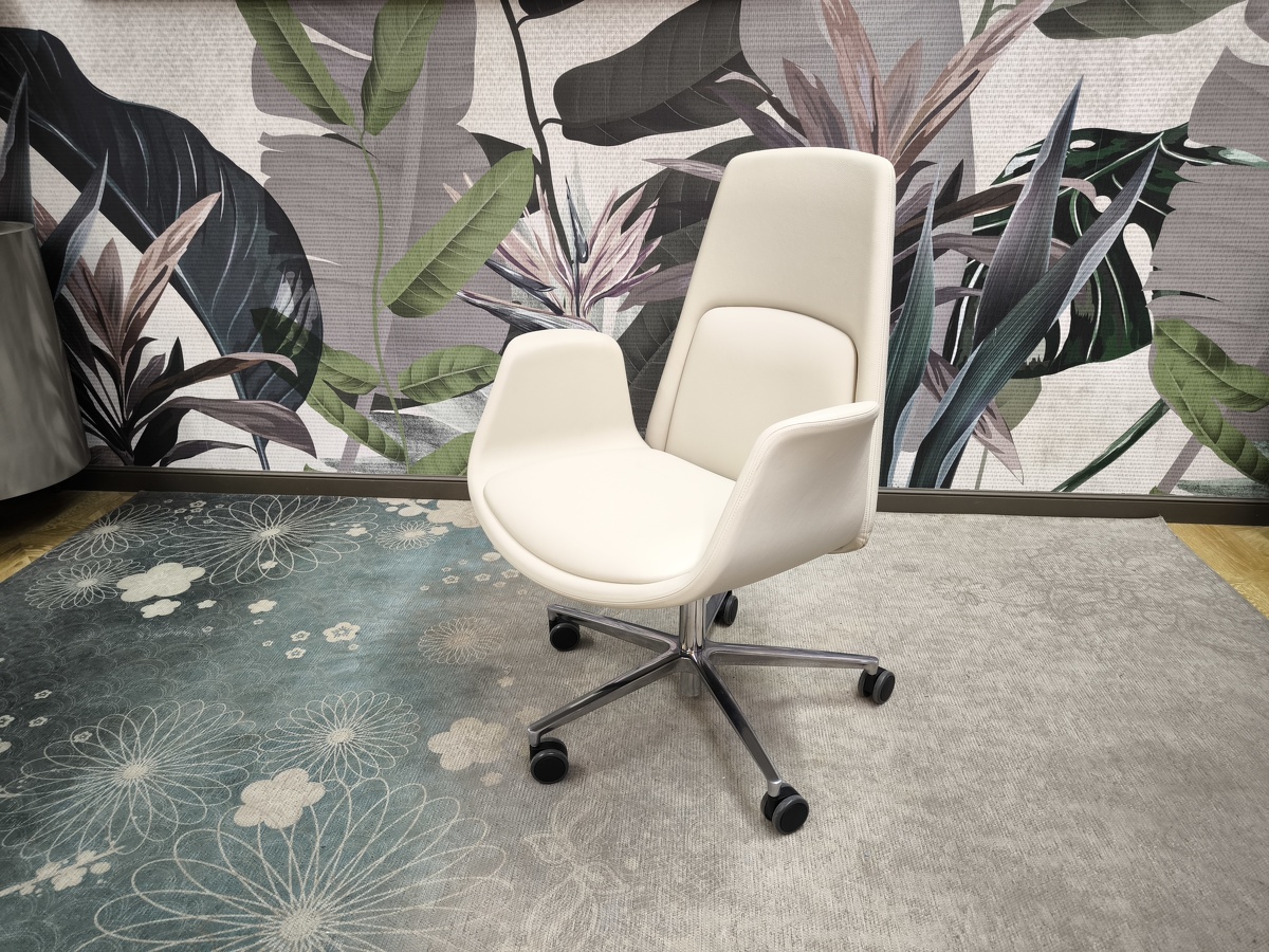 Элегантное офисное кресло из натуральной кожи с лаконичным дизайном. Эргономичные формы и линии, заимствованные из автомобильного дизайна для универсального кресла для домашнего кабинета или рабочего офиса.